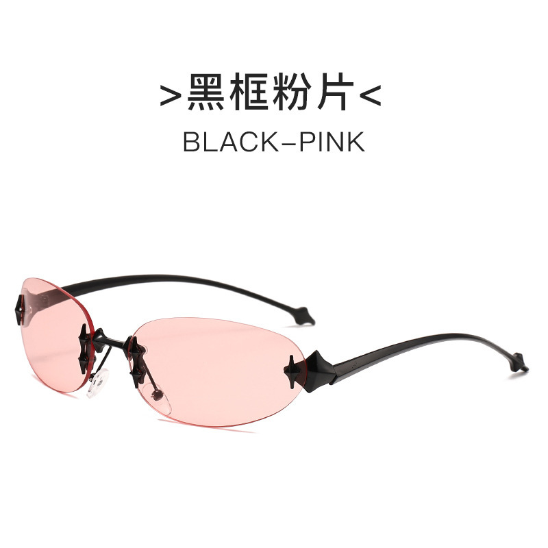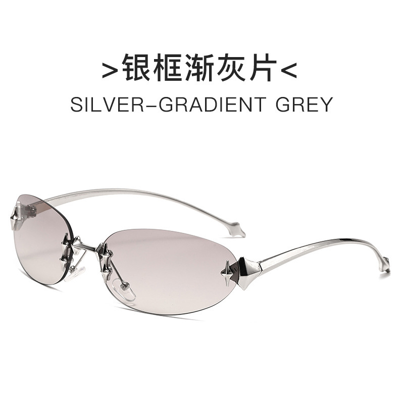 Y2K 프레임리스 타원형 금속 선글라스 gm 뜨거운 소녀 물고기 뼈 대외 무역 스트리트 비트 스타 고양이의 눈 유럽과 미국 선글라스
