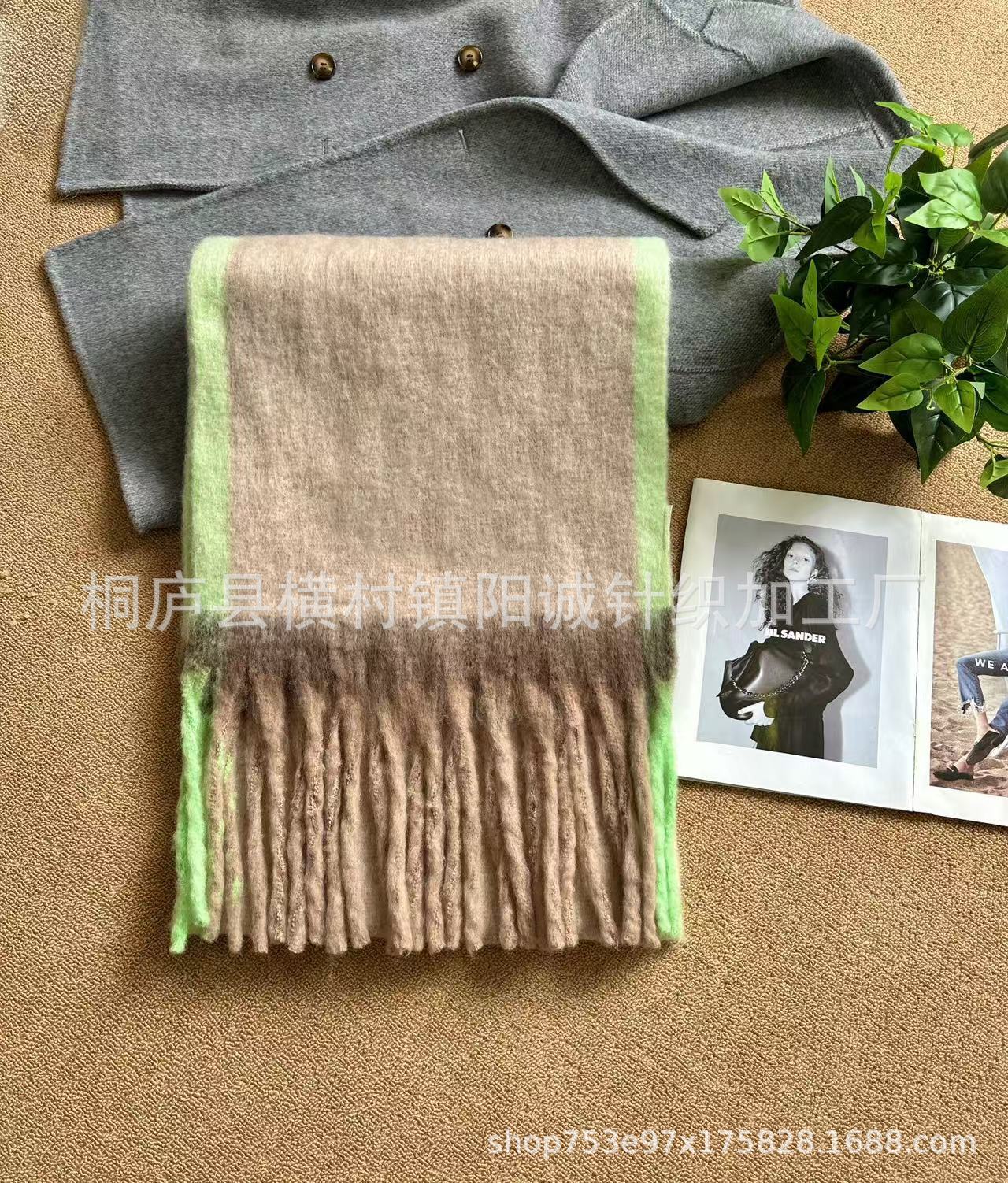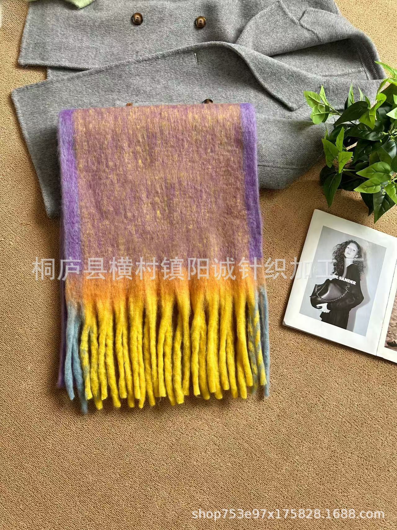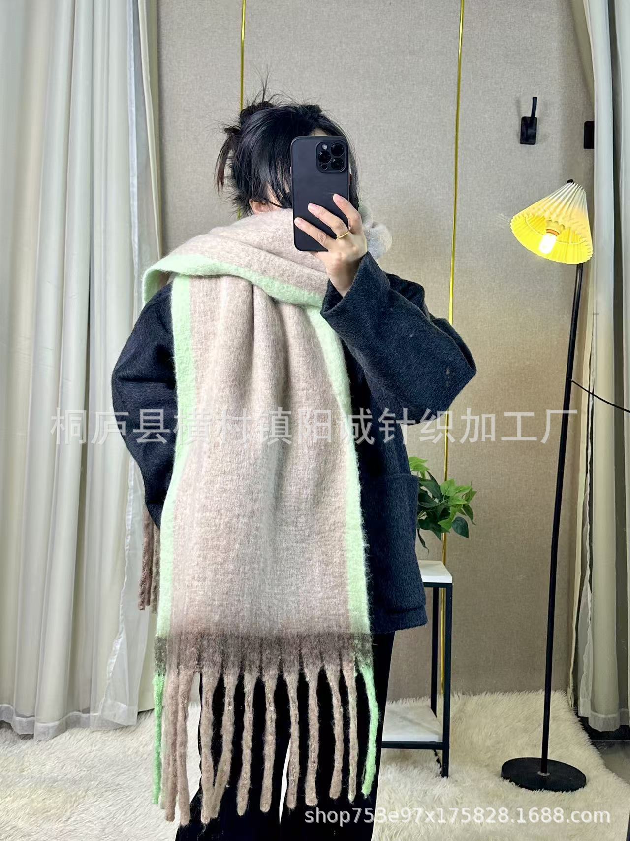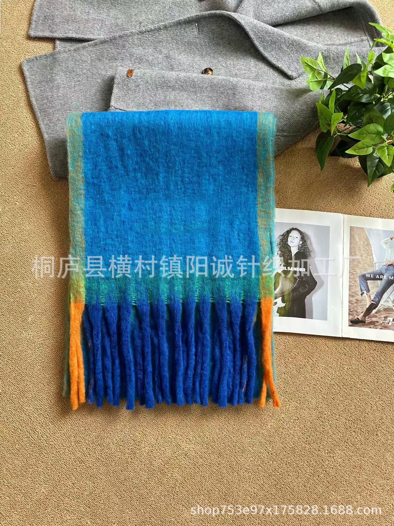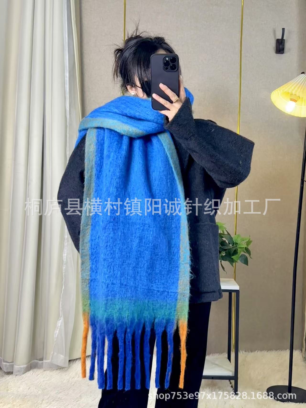 AC 다채로운 가장자리 빛 럭셔리 모조 헤어 풀 양모 따뜻한 두꺼운 도파민 크리스마스 선물 대조 컬러 술 스카프스토어 가기