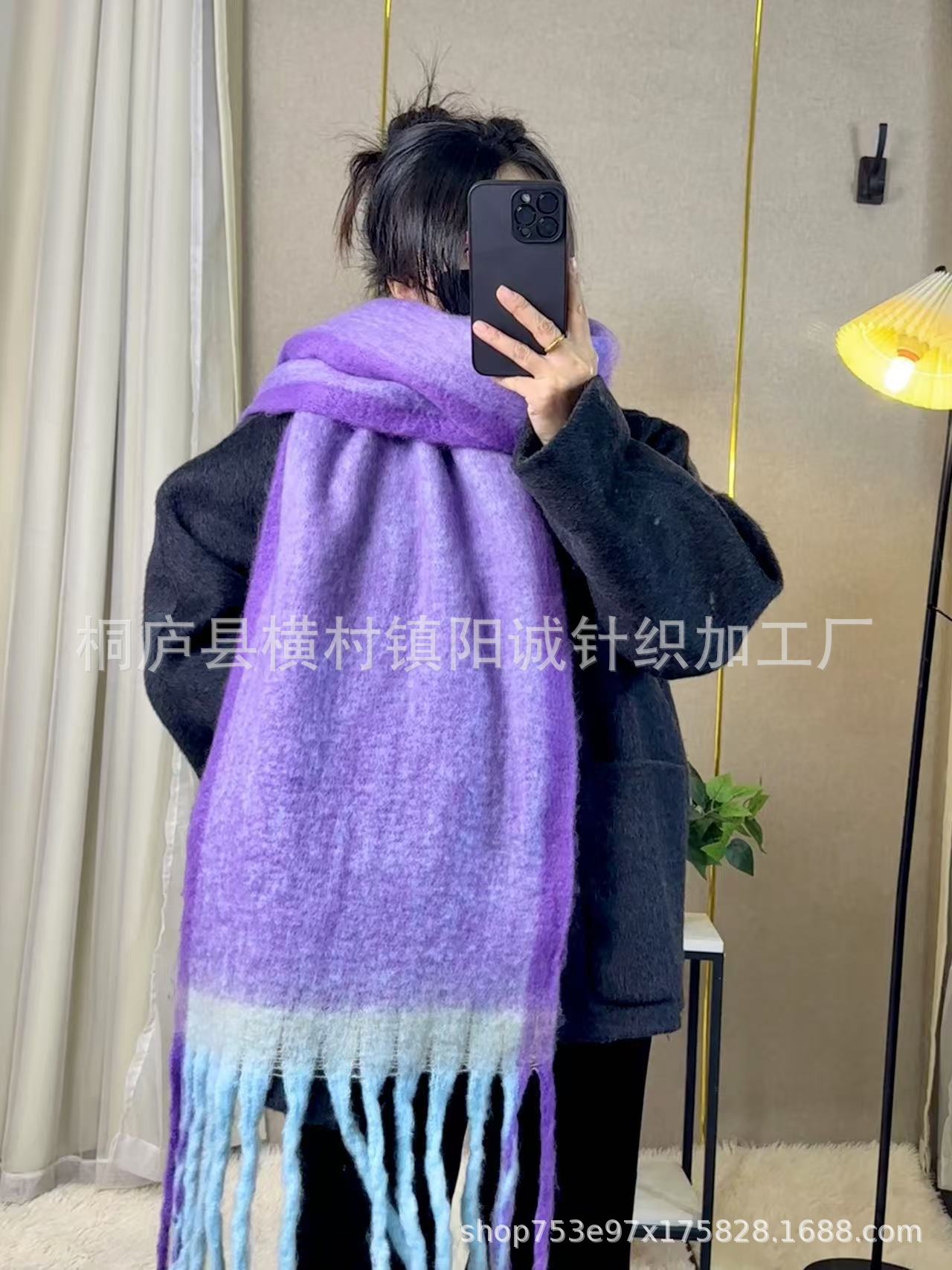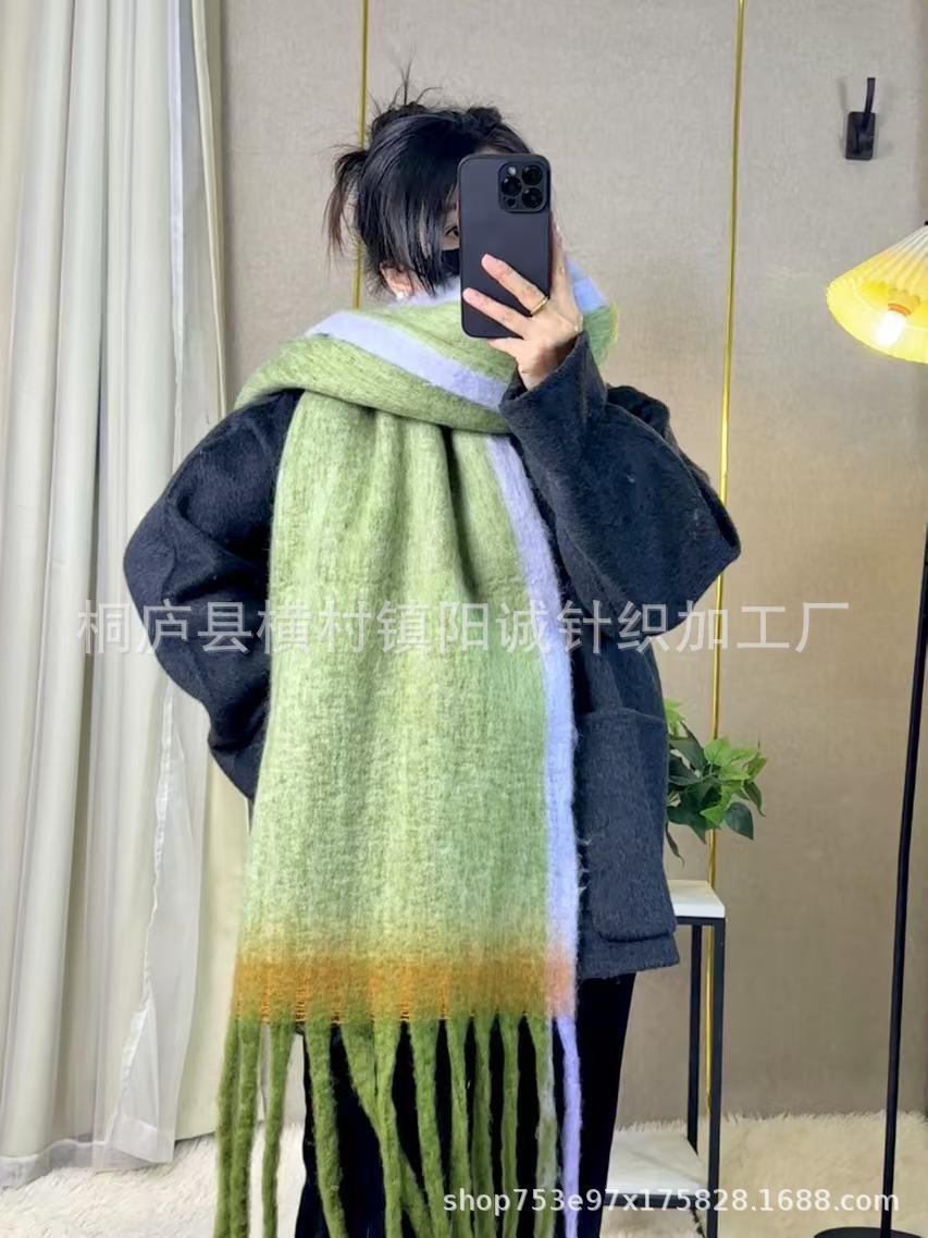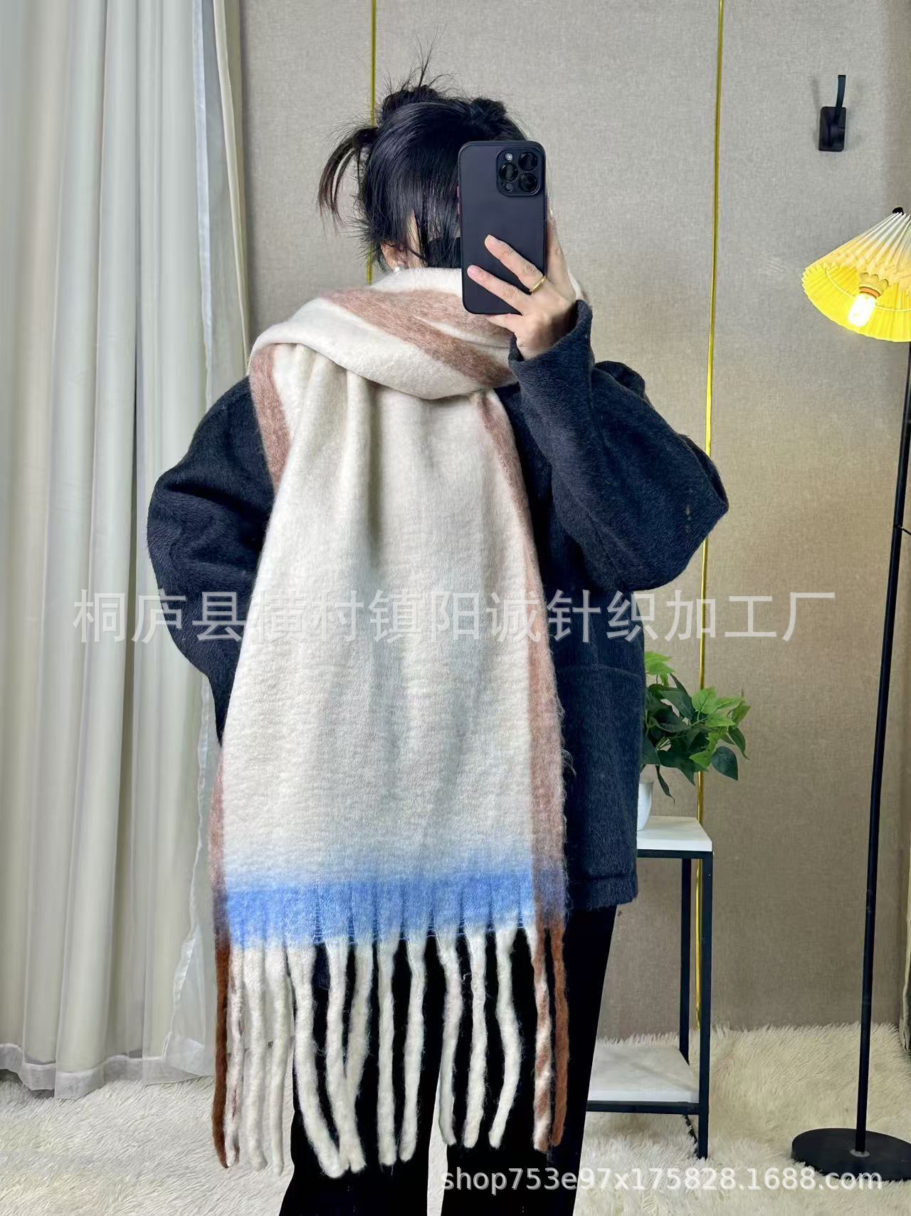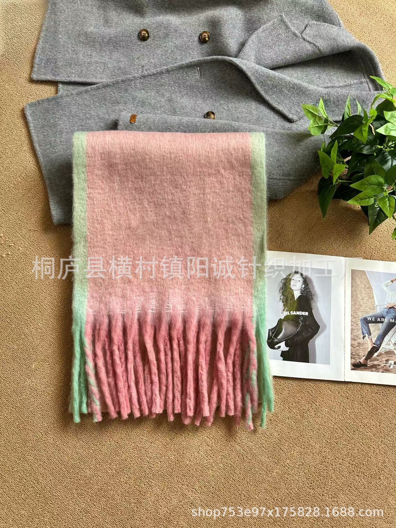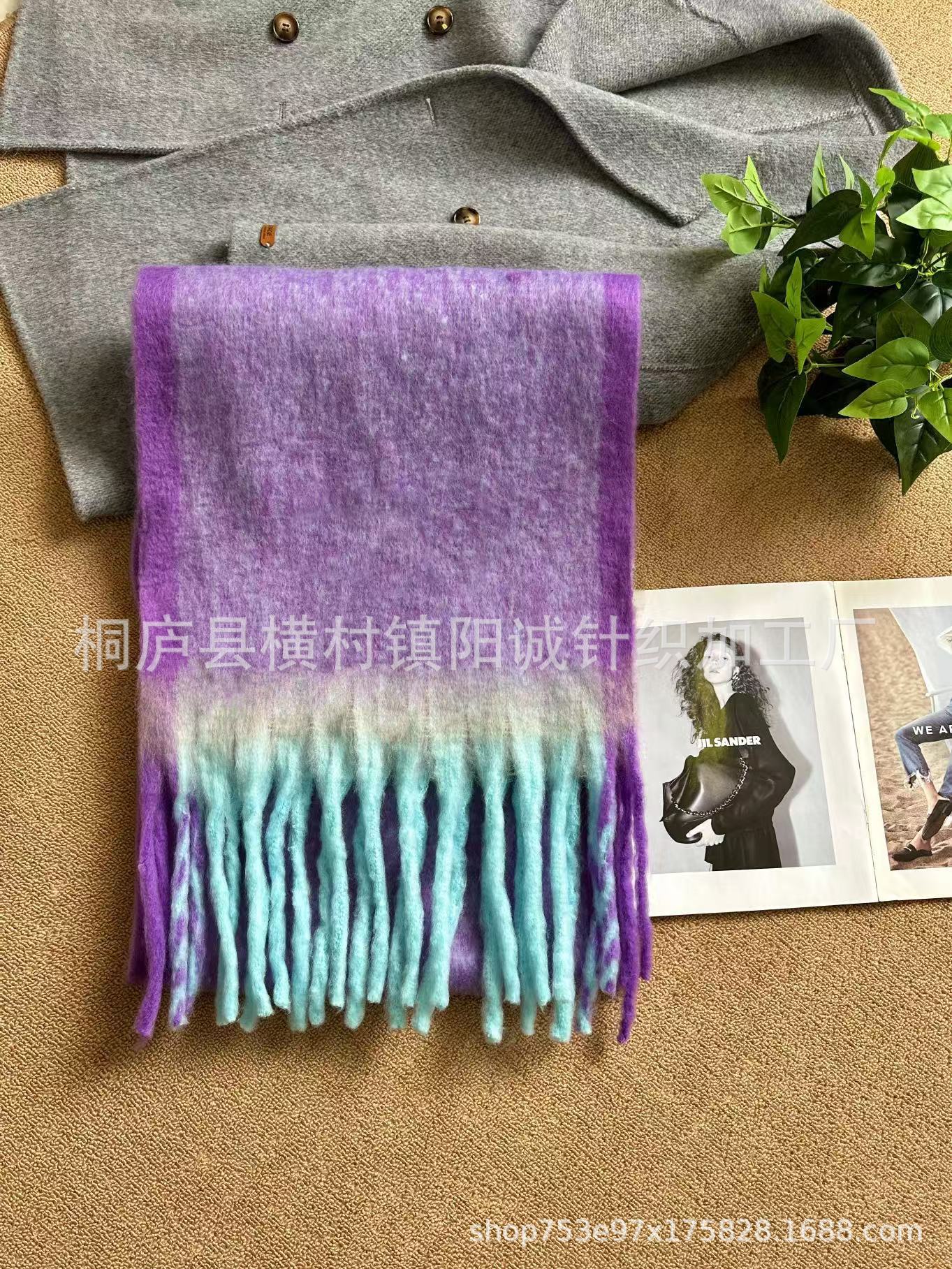 AC 다채로운 가장자리 빛 럭셔리 모조 헤어 풀 양모 따뜻한 두꺼운 도파민 크리스마스 선물 대조 컬러 술 스카프스토어 가기