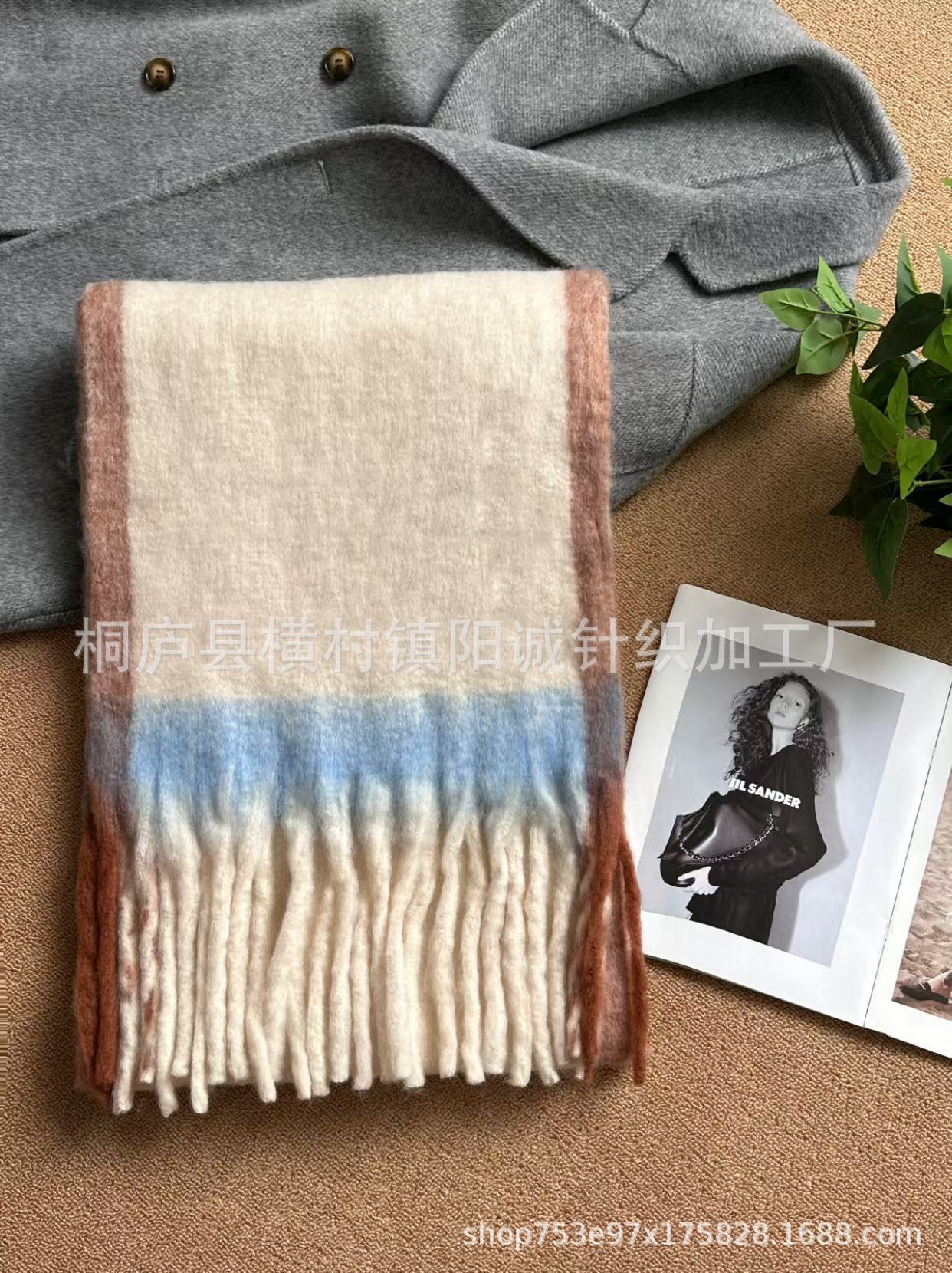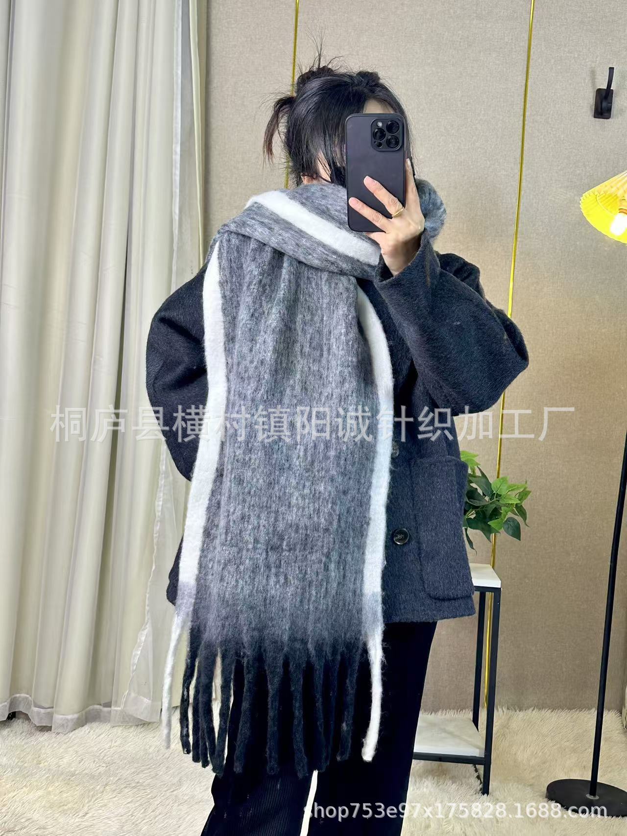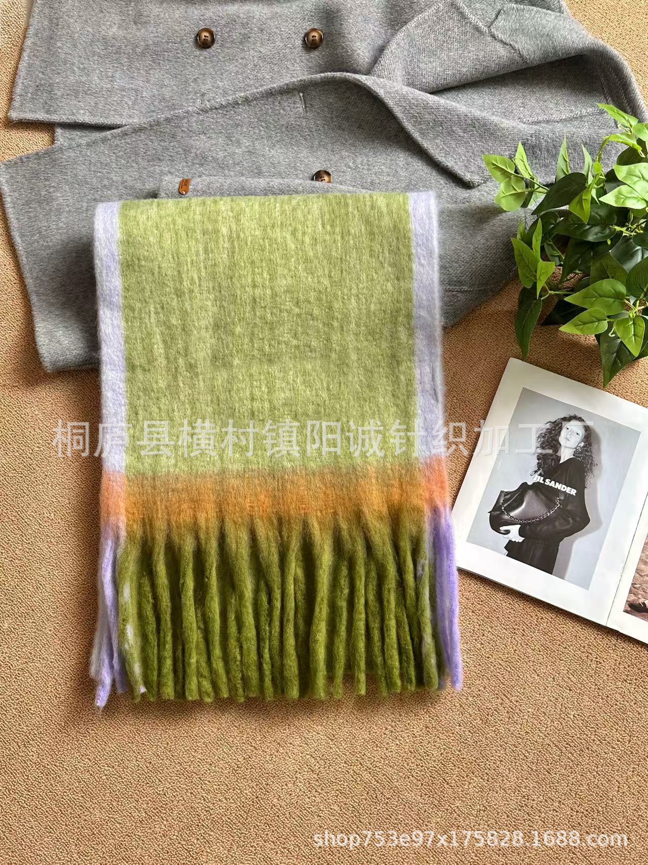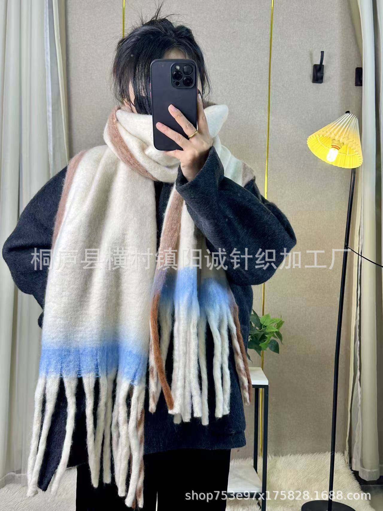 AC 다채로운 가장자리 빛 럭셔리 모조 헤어 풀 양모 따뜻한 두꺼운 도파민 크리스마스 선물 대조 컬러 술 스카프스토어 가기