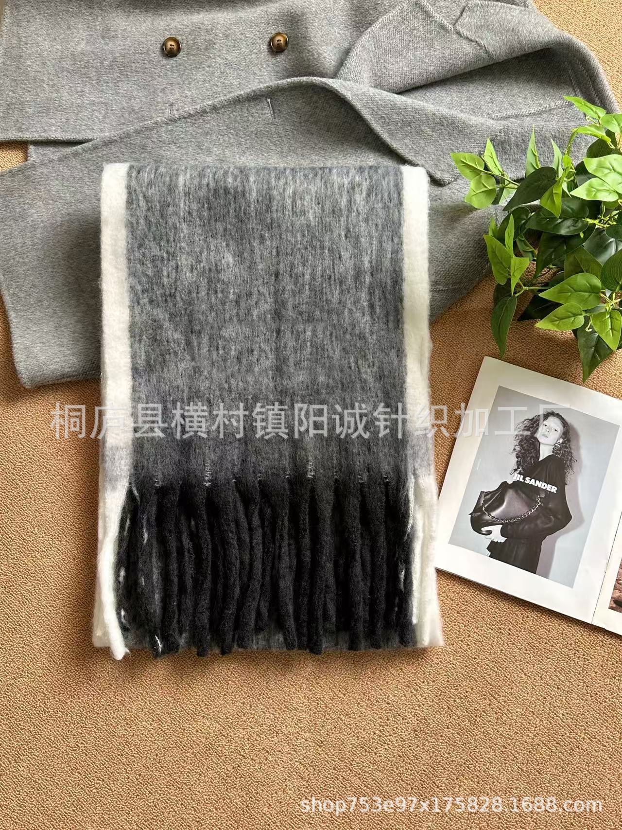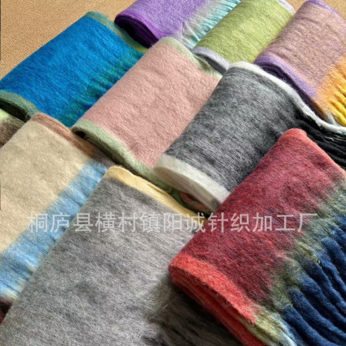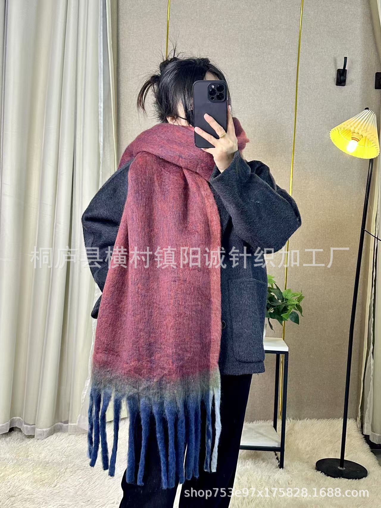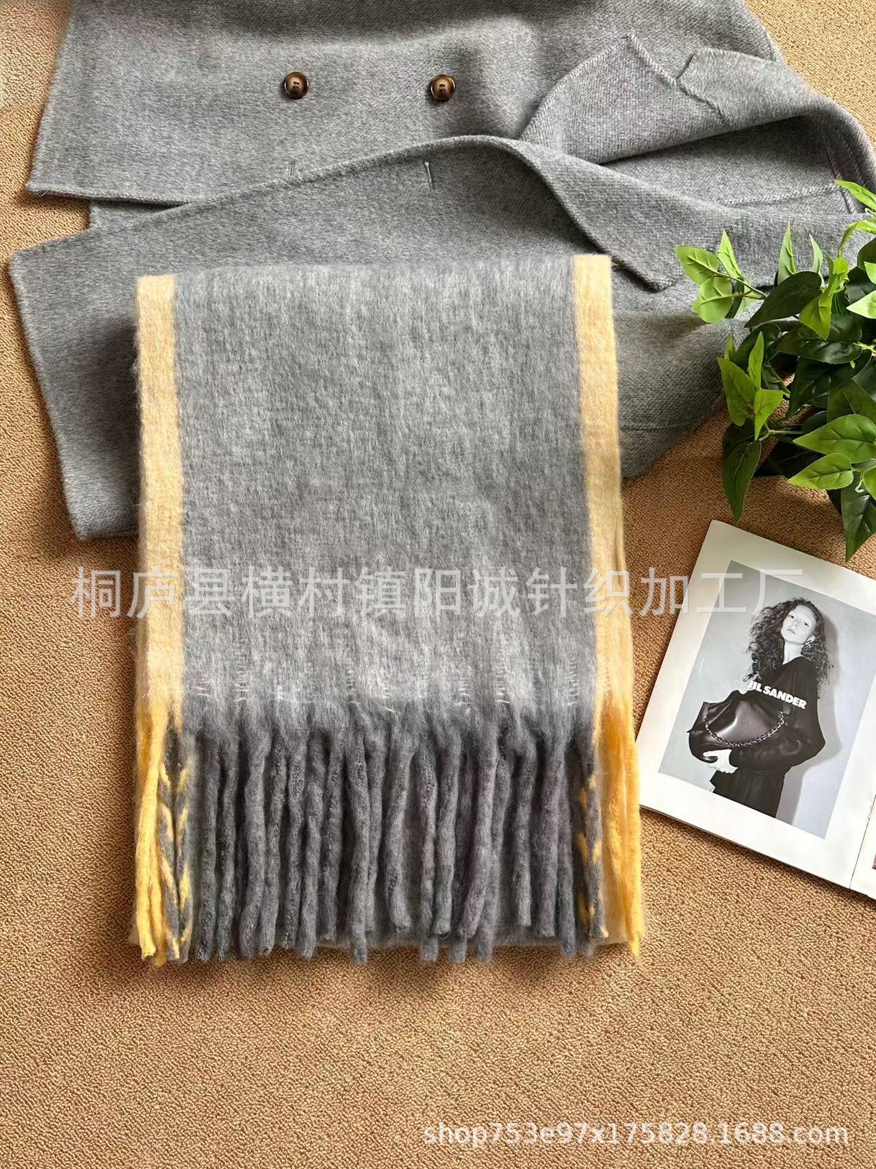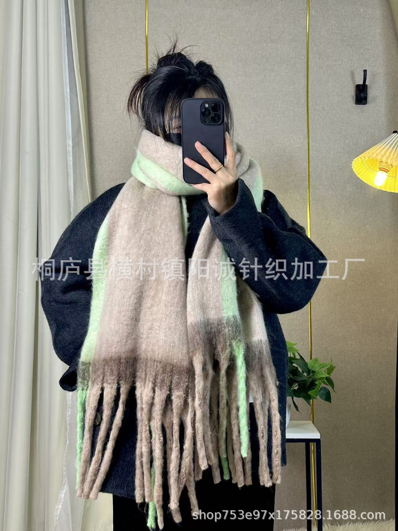 AC 다채로운 가장자리 빛 럭셔리 모조 헤어 풀 양모 따뜻한 두꺼운 도파민 크리스마스 선물 대조 컬러 술 스카프스토어 가기