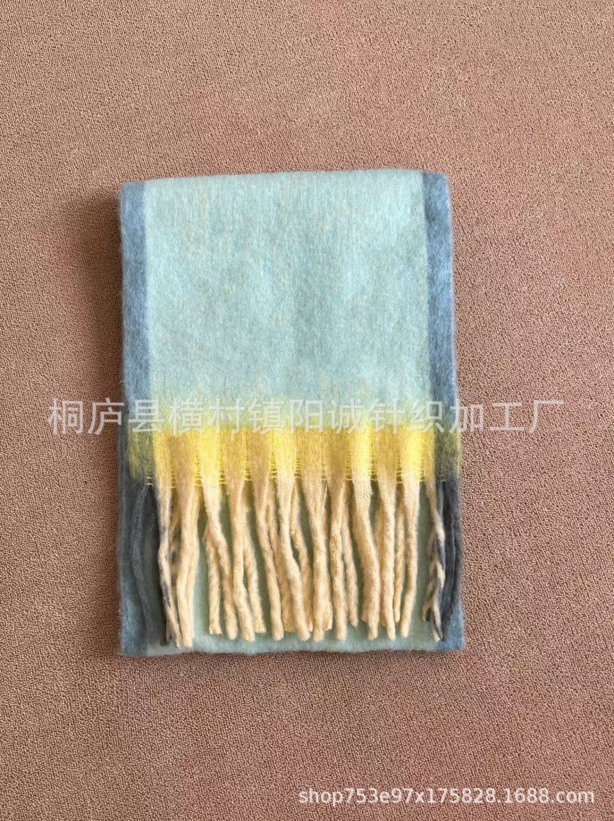 AC 다채로운 가장자리 빛 럭셔리 모조 헤어 풀 양모 따뜻한 두꺼운 도파민 크리스마스 선물 대조 컬러 술 스카프