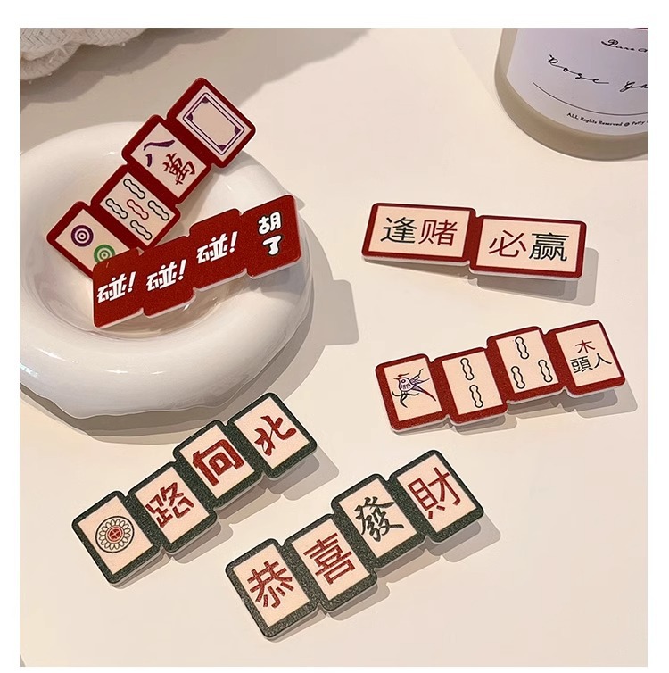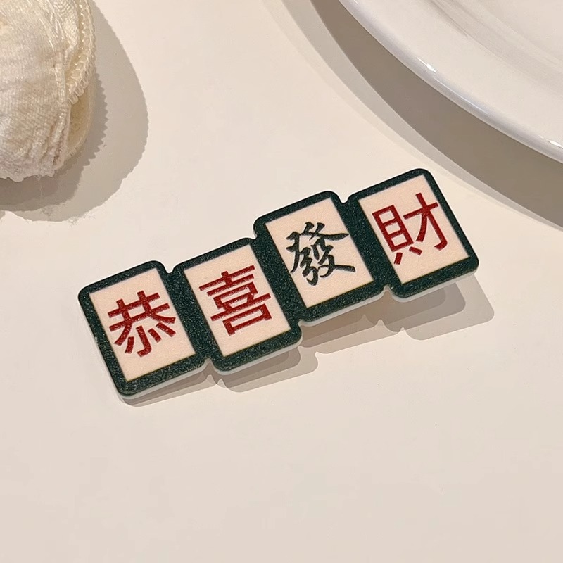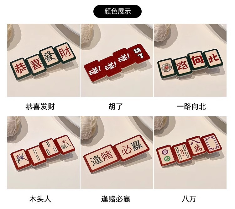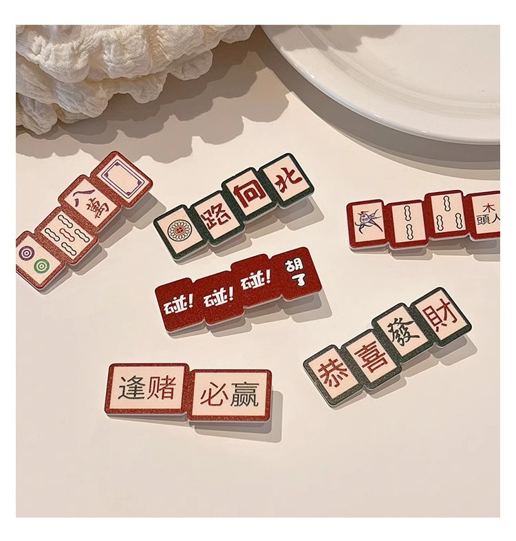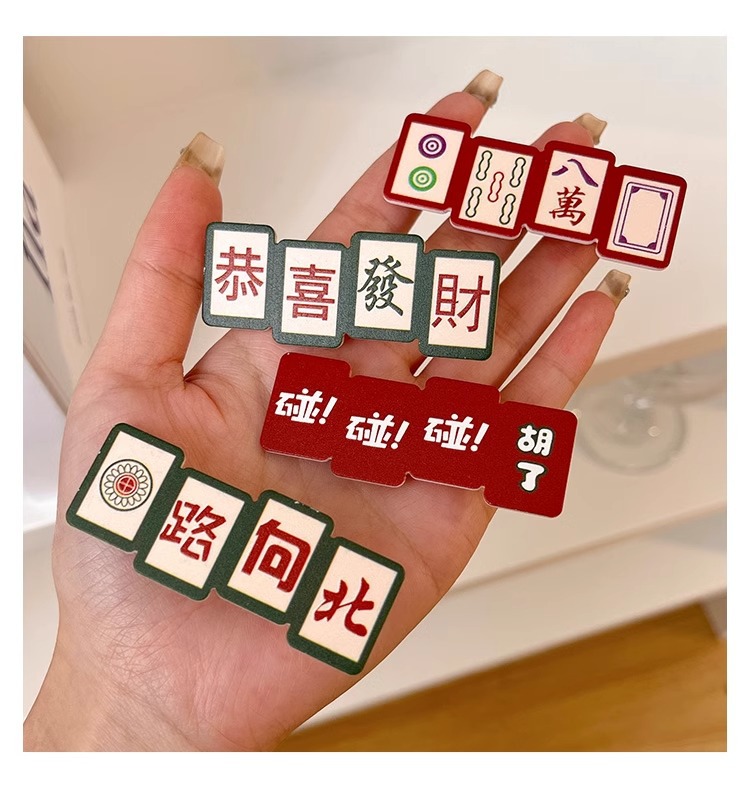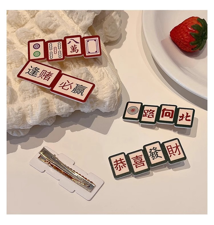 웃긴 새해 헤어핀 여성 사이드 뱅 클립 머리글 귀여운 새해 마작 헤어핀 깨진 머리 클립스토어 가기