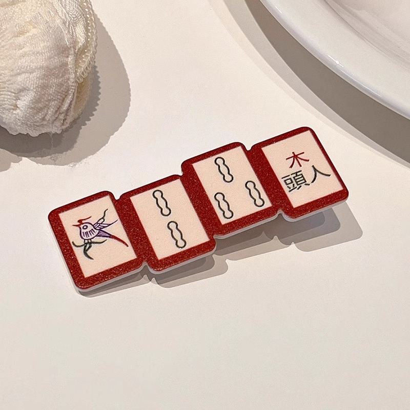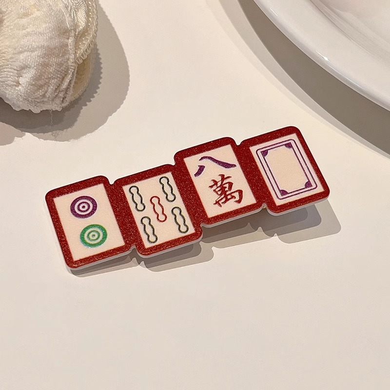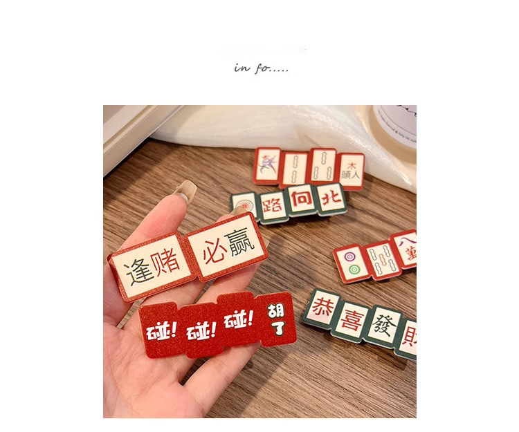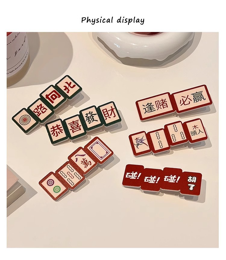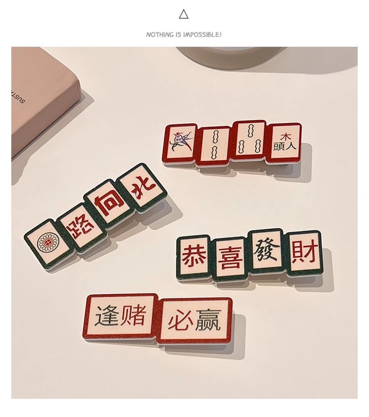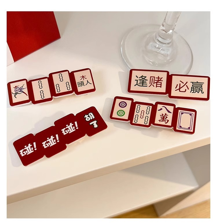 웃긴 새해 헤어핀 여성 사이드 뱅 클립 머리글 귀여운 새해 마작 헤어핀 깨진 머리 클립스토어 가기