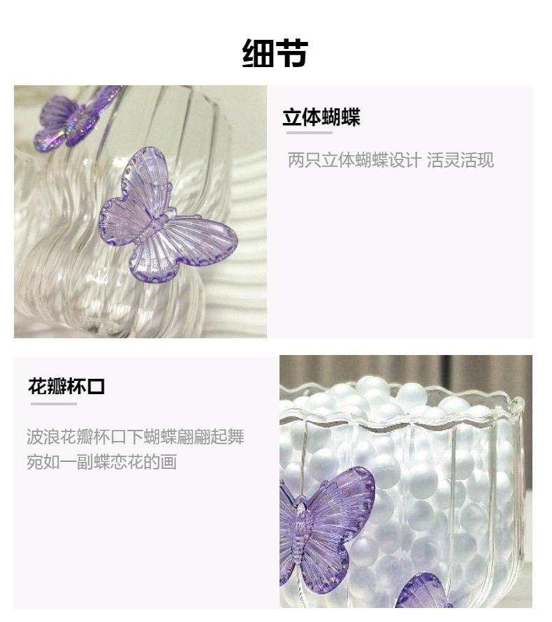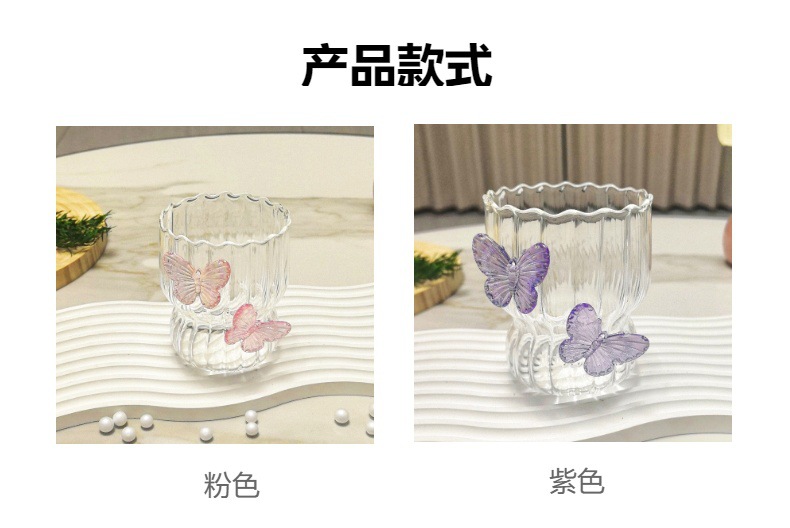 높은 가치의 수제 3 차원 나비 유리 창조적 인 커피 컵 꽃잎 컵 줄무늬 컵 우유 컵 손 선물스토어 가기