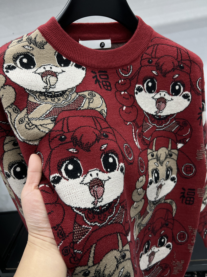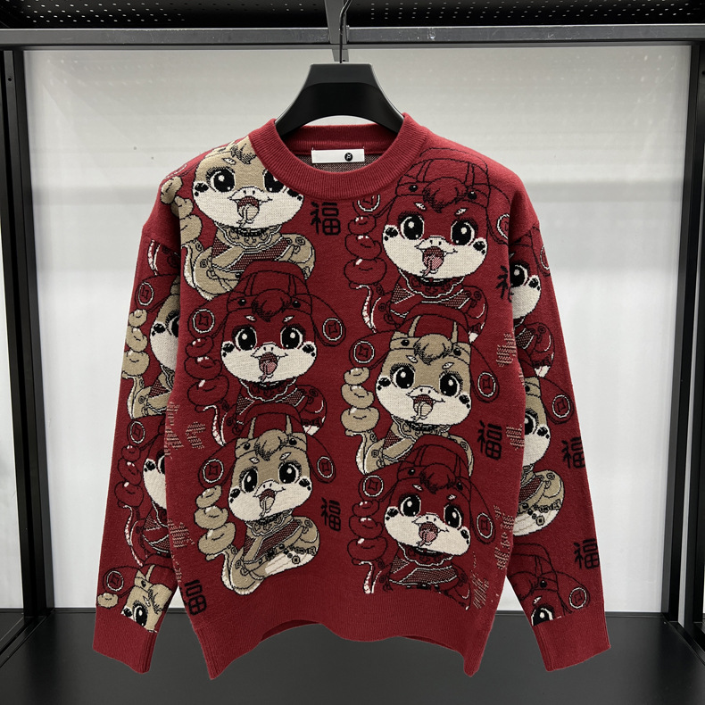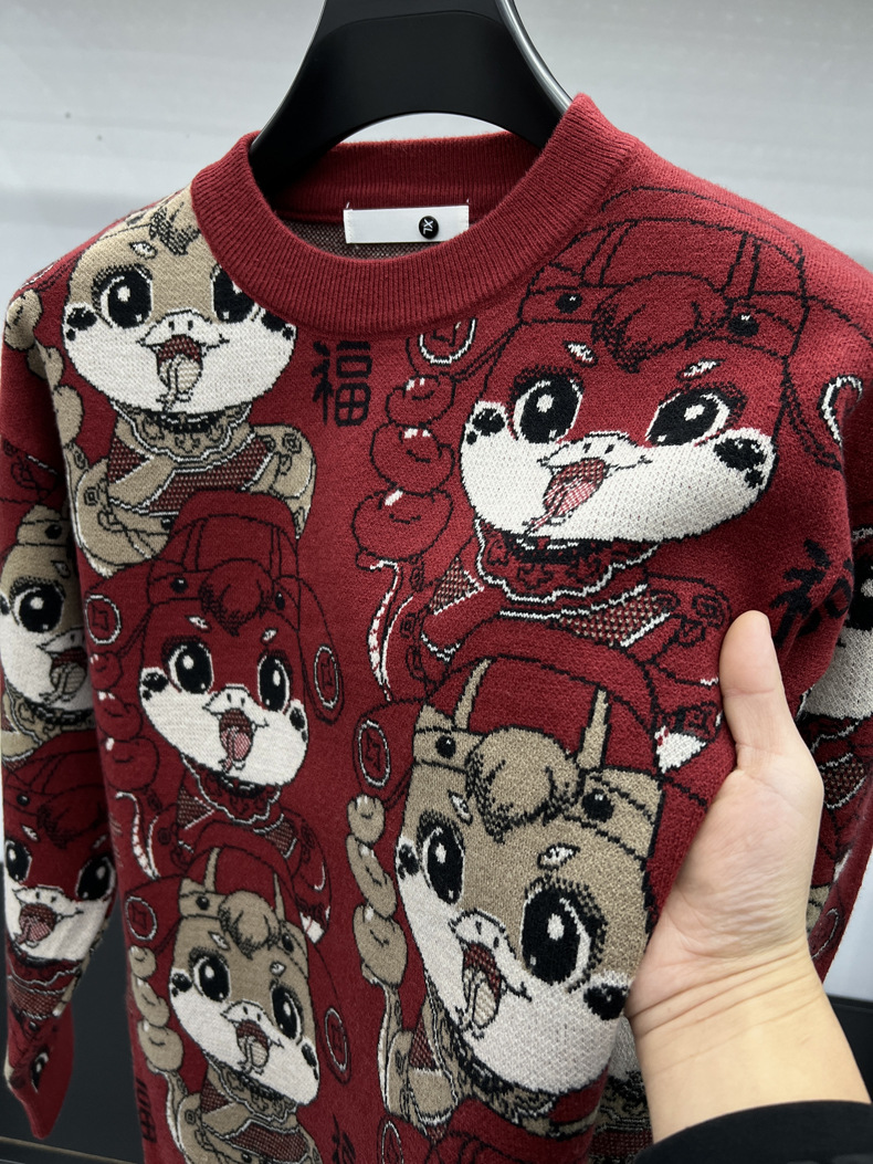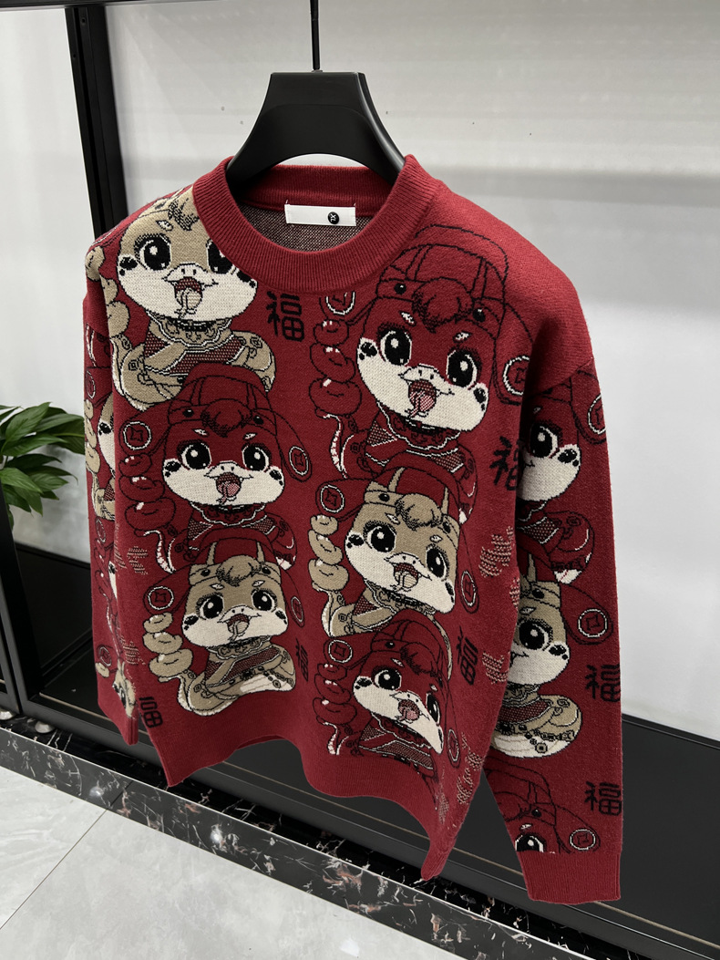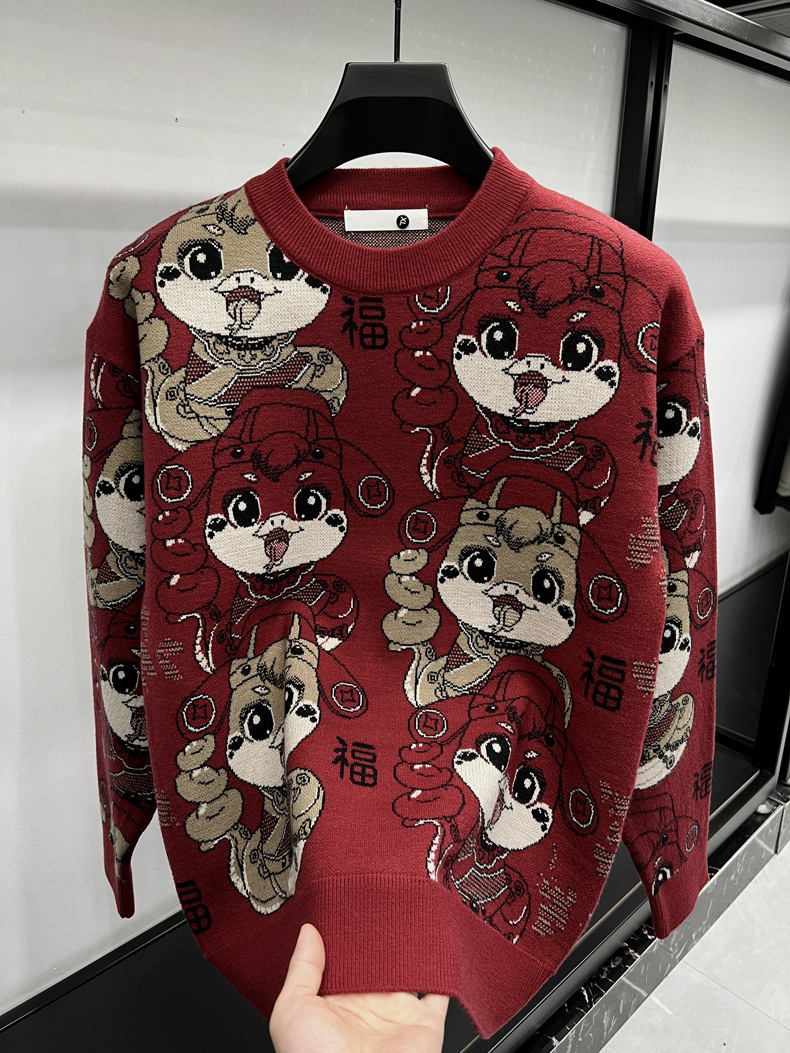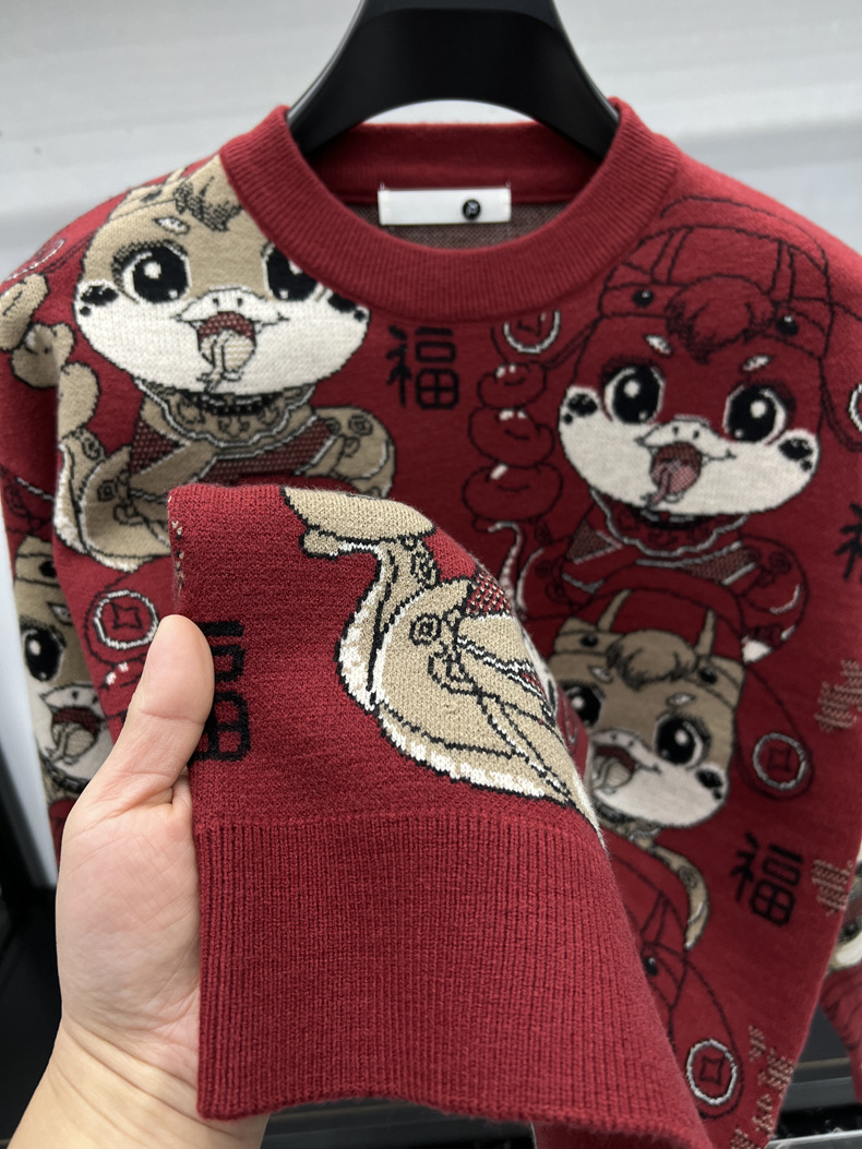 중국 붉은 구정 년 남자와 여자의 가을과 겨울 설날 뱀의 축제 년 두꺼운 자카드 패션 니트 스웨터스토어 가기