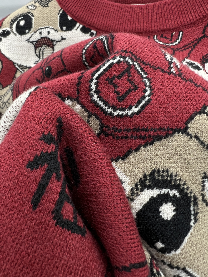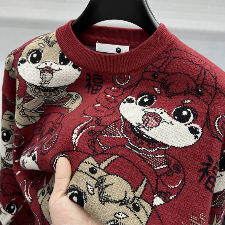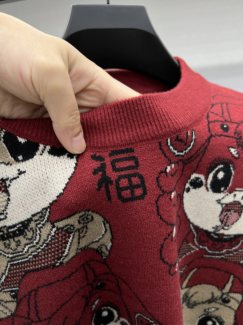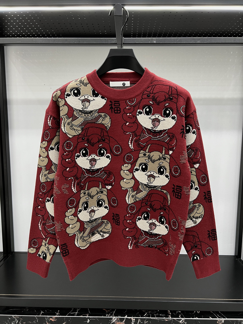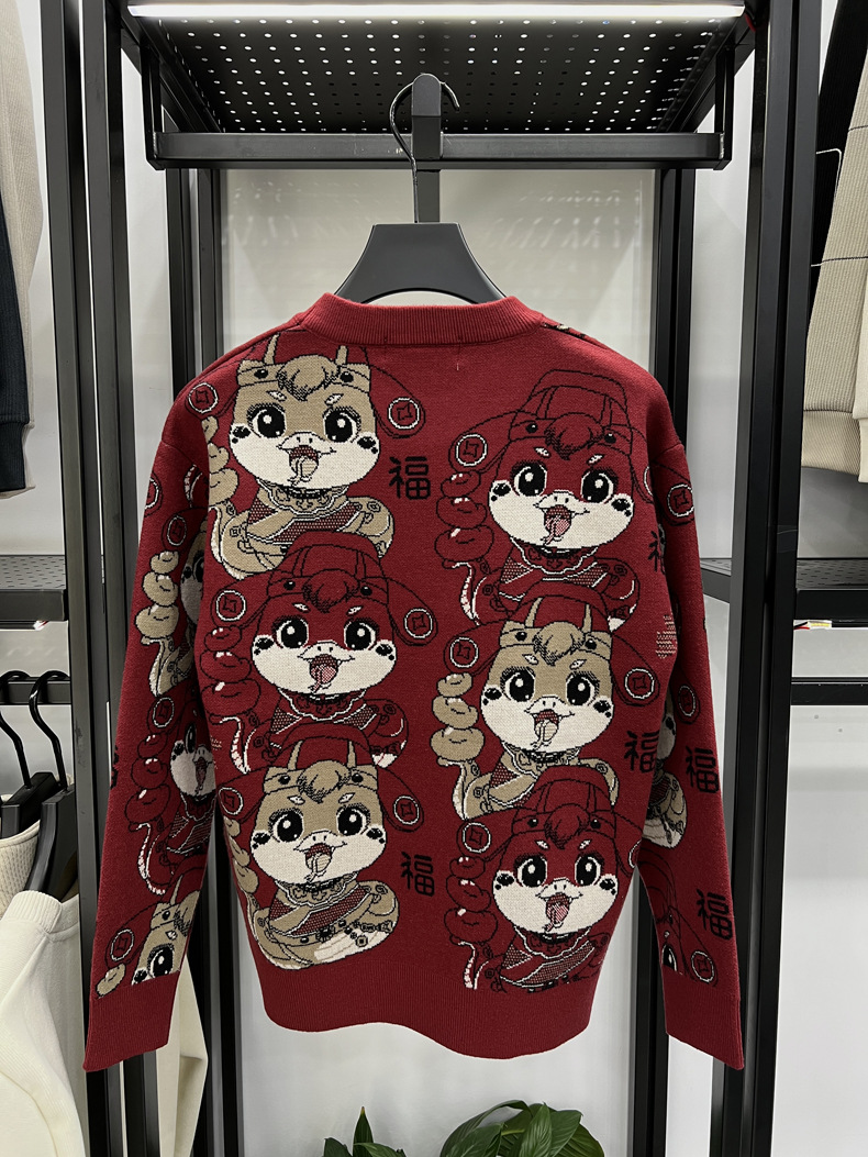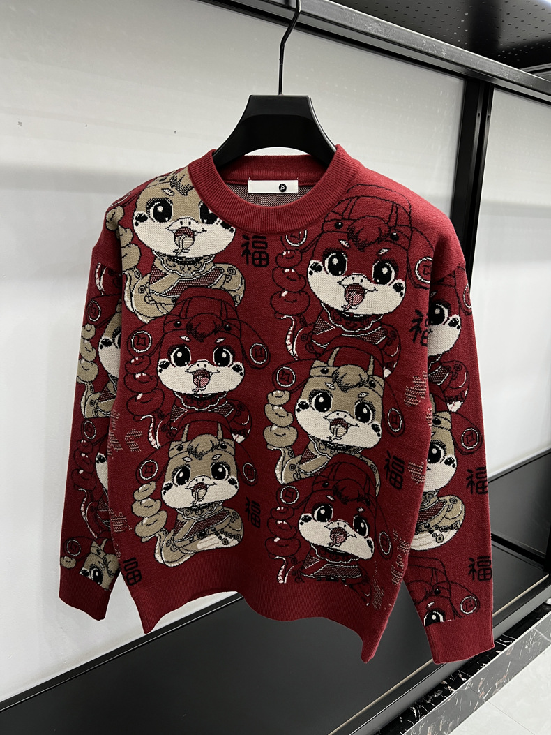 중국 붉은 구정 년 남자와 여자의 가을과 겨울 설날 뱀의 축제 년 두꺼운 자카드 패션 니트 스웨터스토어 가기