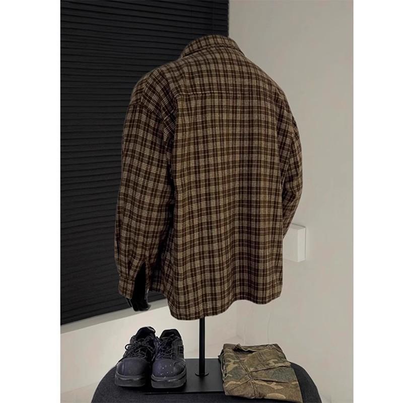 아메리칸 스타일 레트로 빈티지 격자 무늬 셔츠 남자의 가을과 겨울 스타일 일본 스타일 긴 소매 셔츠 내부 재킷스토어 가기