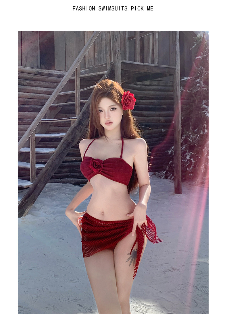 순수한 욕망 섹시한 스파이스 소녀 3 차원 꽃 튜브 탑 여성을위한 작은 가슴 3 피스 비키니 BIKINI 수영복
