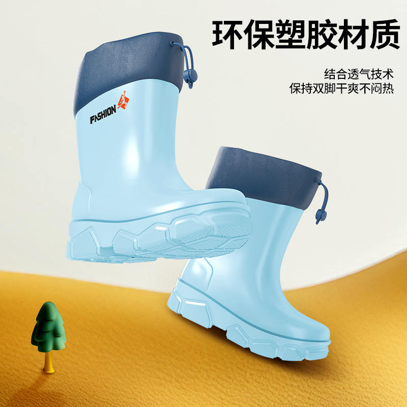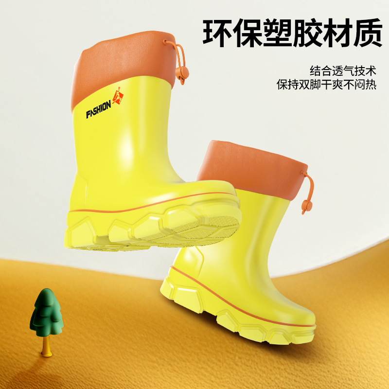 어린이 장화 2024 새로운 물 부츠 소년 미끄럼 방지 어린이 장화 소녀 방수 기모 물 신발 소년 튜브스토어 가기