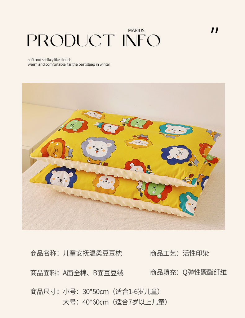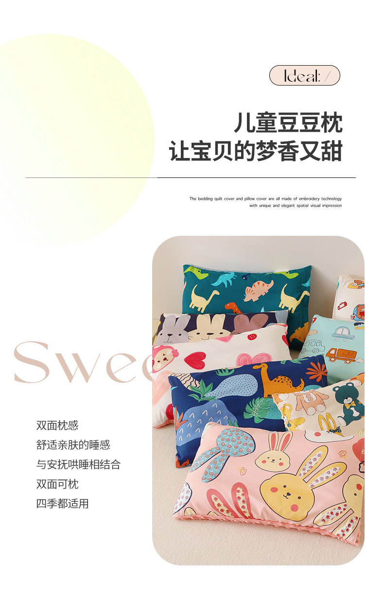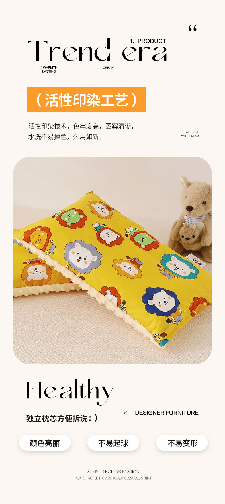 A급 순면 비니베개, 어린이 진정용 비니벨벳 베개, 싱글 베개 커버, 순면 유치원 베개심, 공룡의 세계