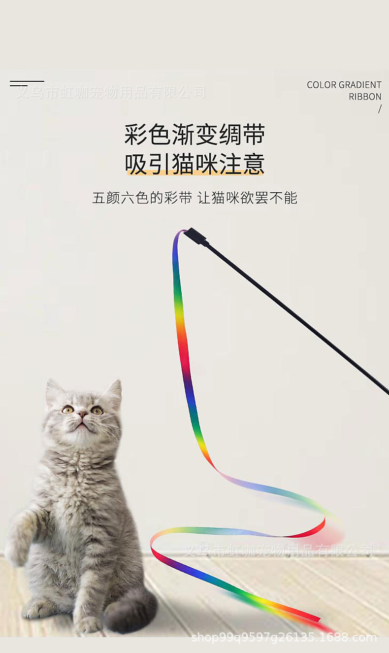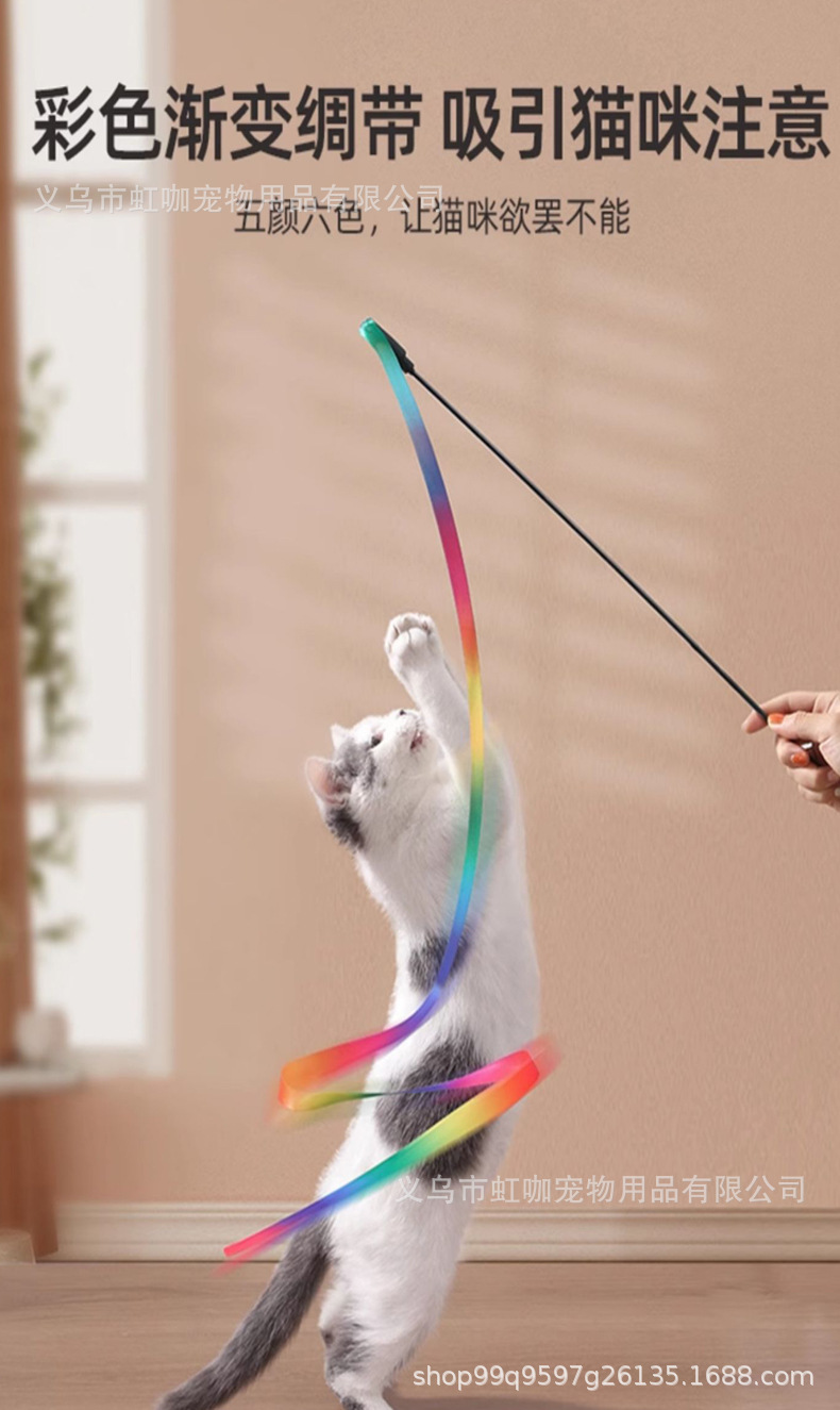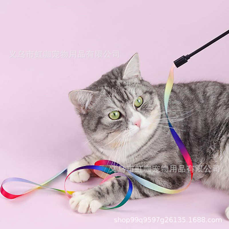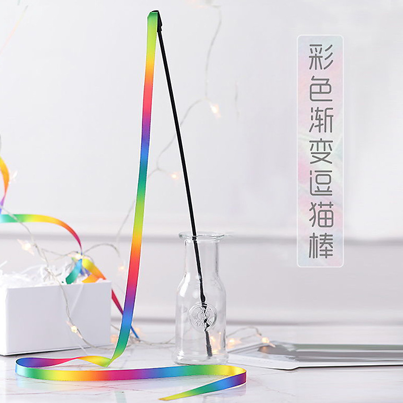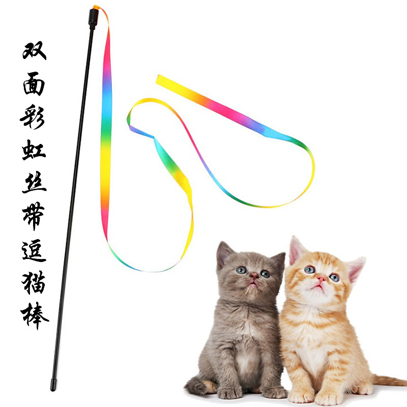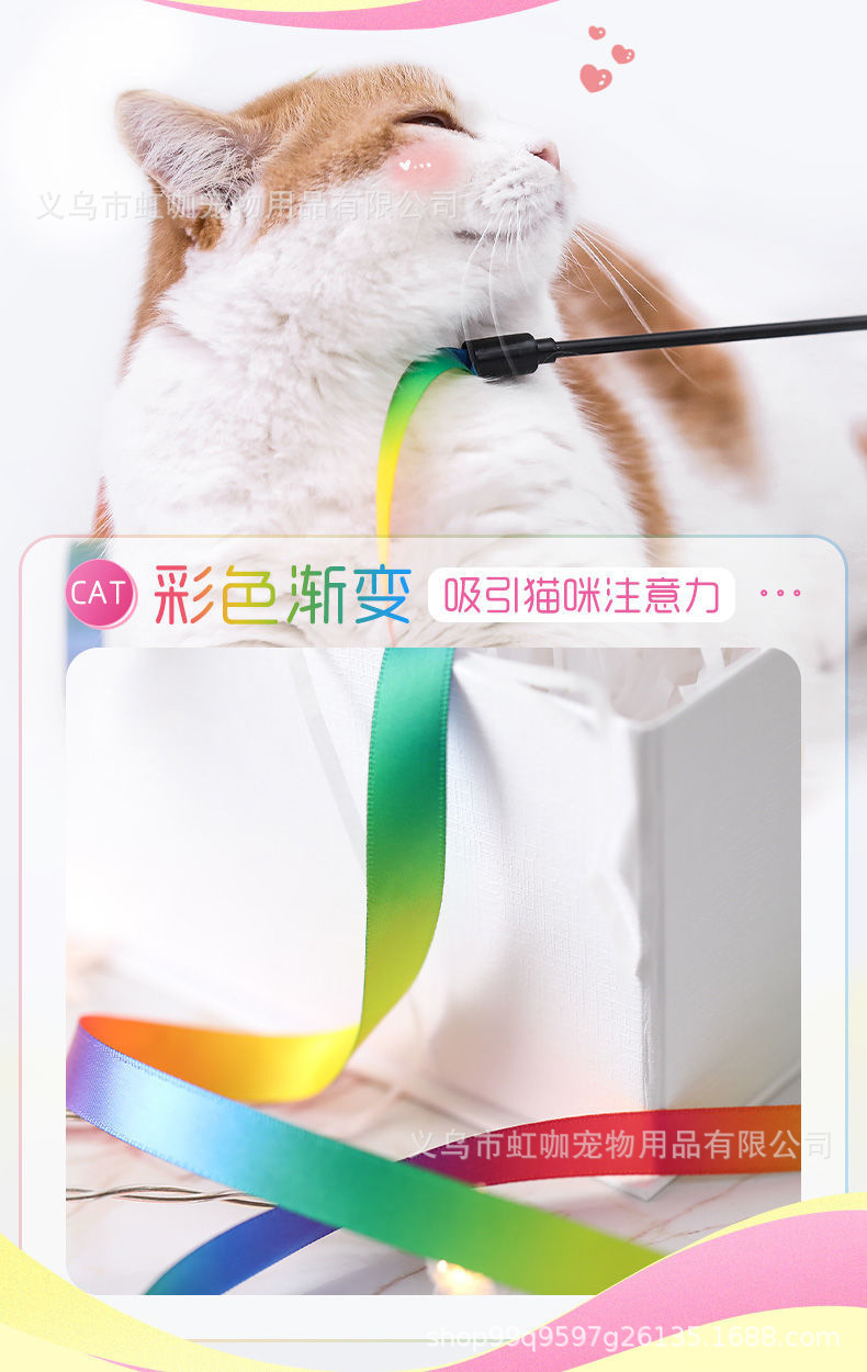 양면 레인보우 리본 고양이 테이 스틱 물린 저항하는 레인보우 리본 블랙 로드 고양이 장난감 셀프 헤이 무핑 아티팩트 고양이 용품스토어 가기