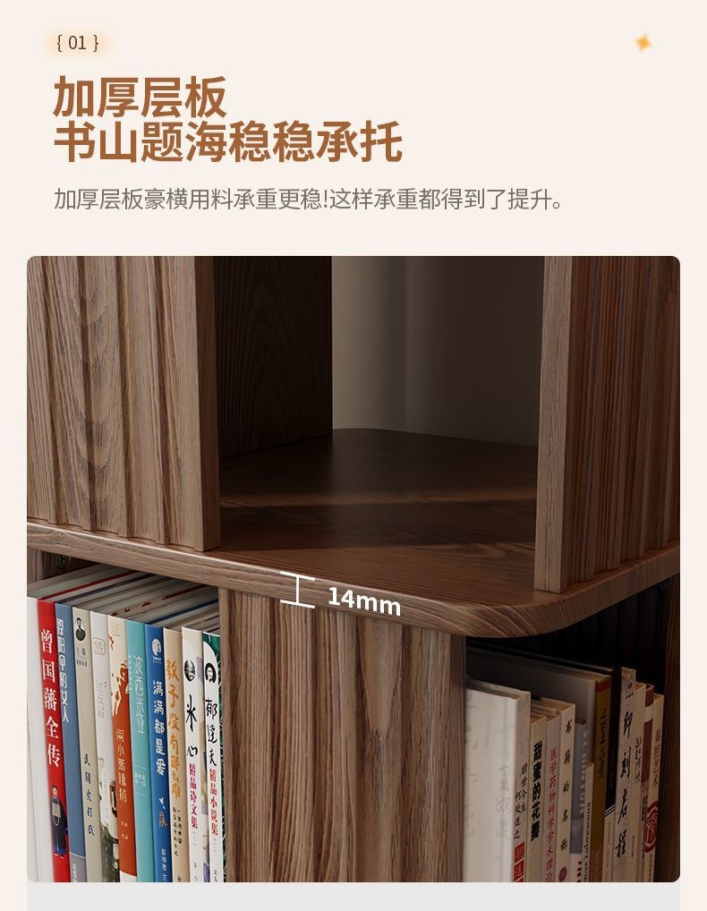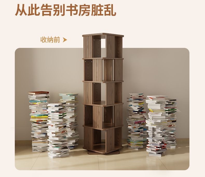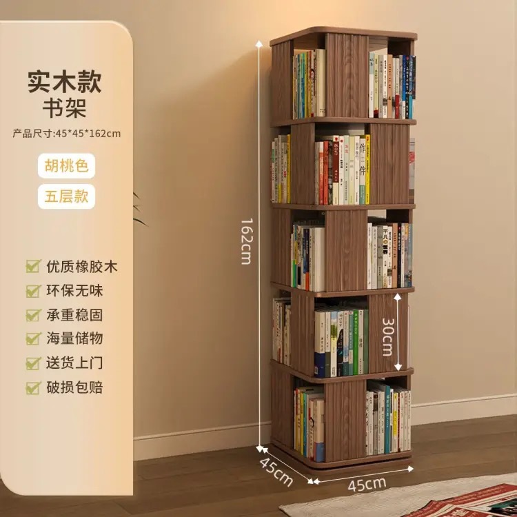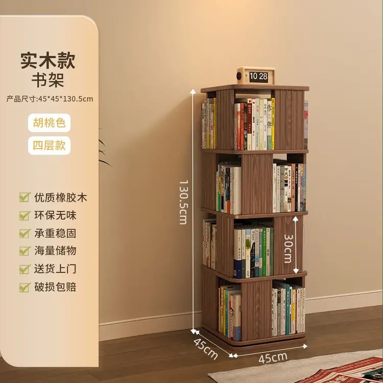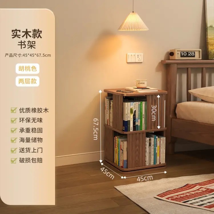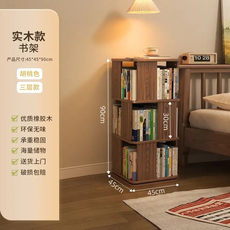 솔리드 우드 회전 책장 책장 가정용 사이드 테이블 보관 캐비닛 어린이 거실 바닥 보관 랙