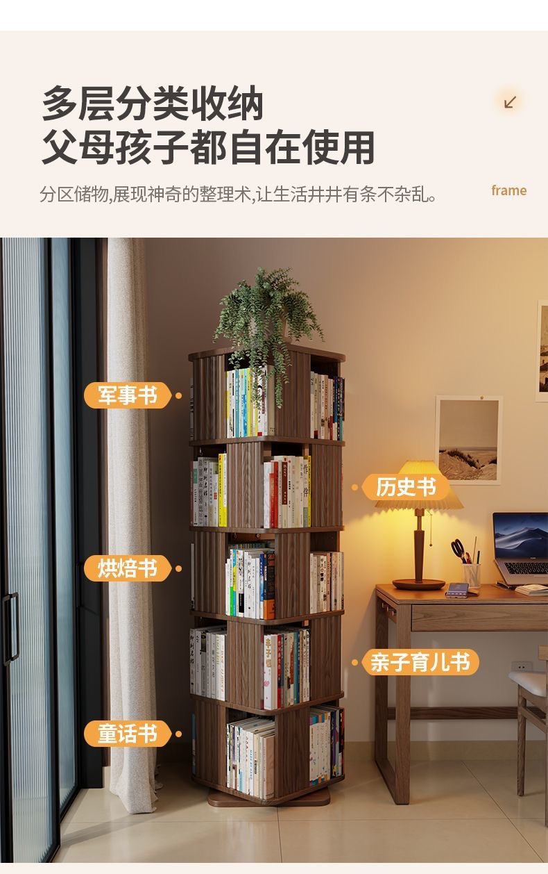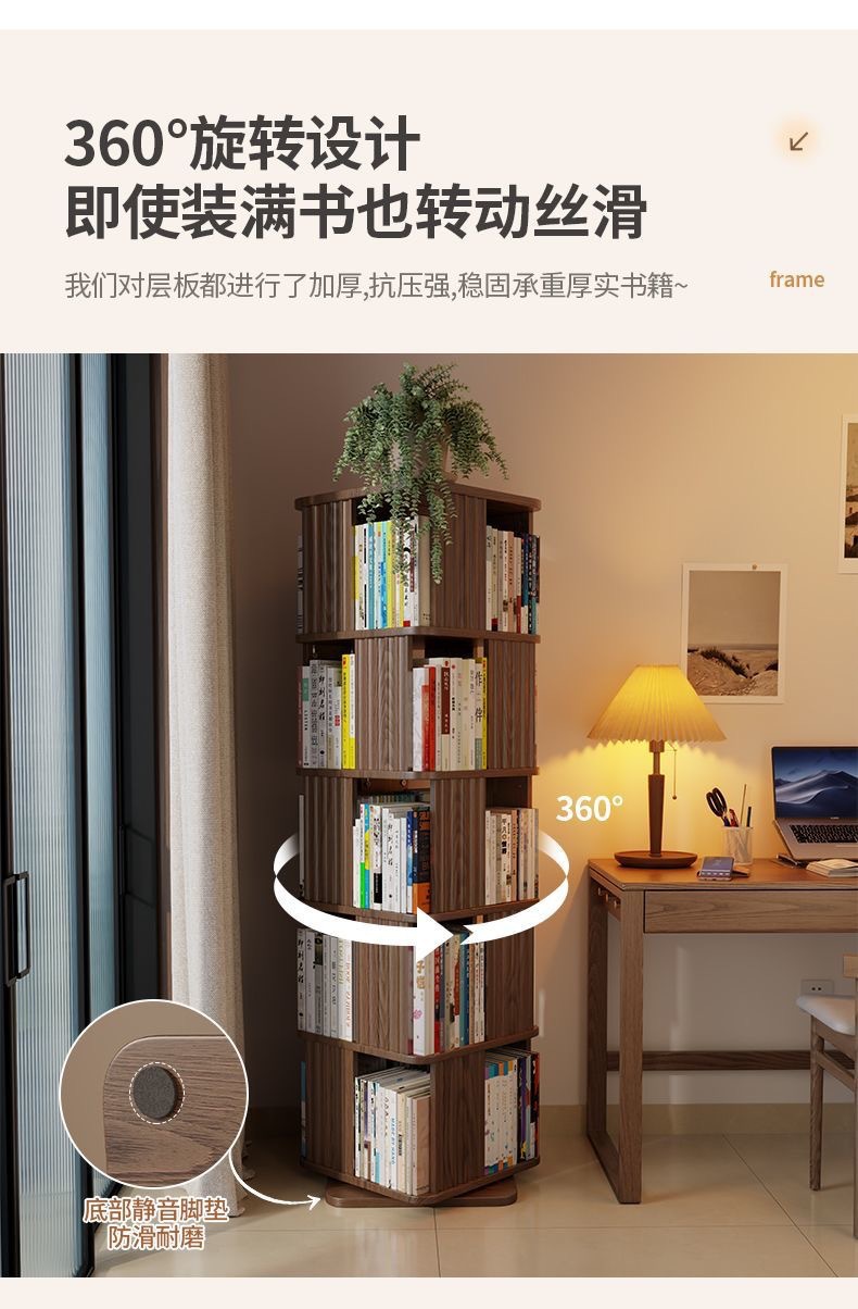 • 5단 360도 회전이 가능한 책장 - 원목색상
