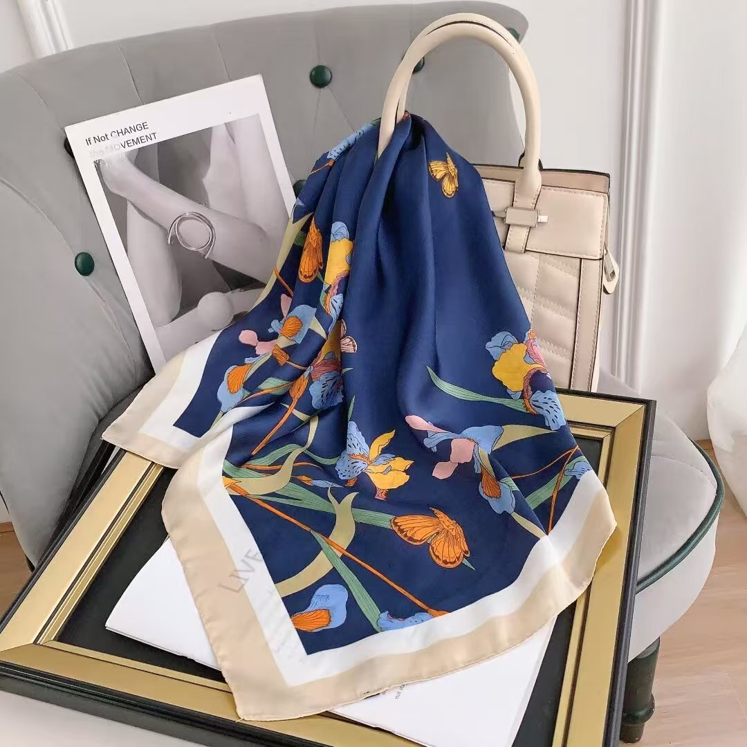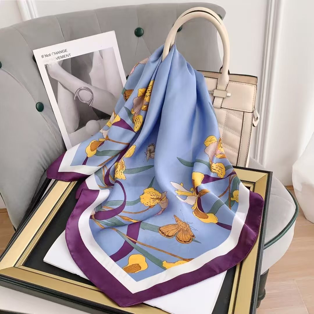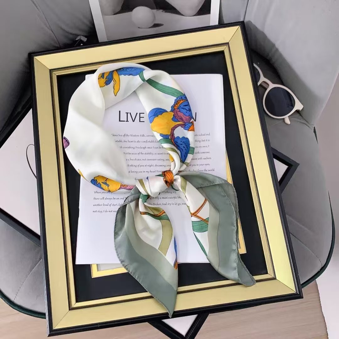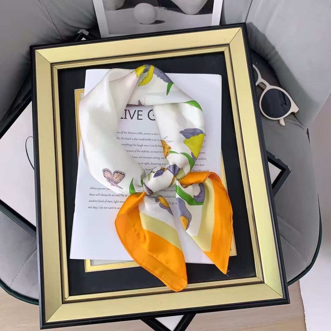가을과 겨울 새로운 한국 스타일 장미 모조 실크 우아한 작은 광장 스카프 따뜻한 장식 뽕나무 실크 스카프