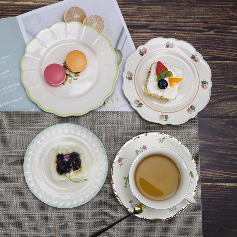 미국 스타일 빈티지 디저트 플레이트 목가적 인 스타일 신선한 스타일 꽃 가정용 세라믹 디너 플레이트 식기 오래 된 빈티지 플레이트스토어 가기