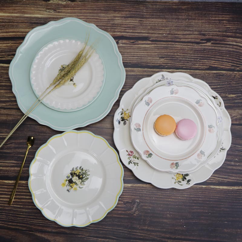 미국 스타일 빈티지 디저트 플레이트 목가적 인 스타일 신선한 스타일 꽃 가정용 세라믹 디너 플레이트 식기 오래 된 빈티지 플레이트