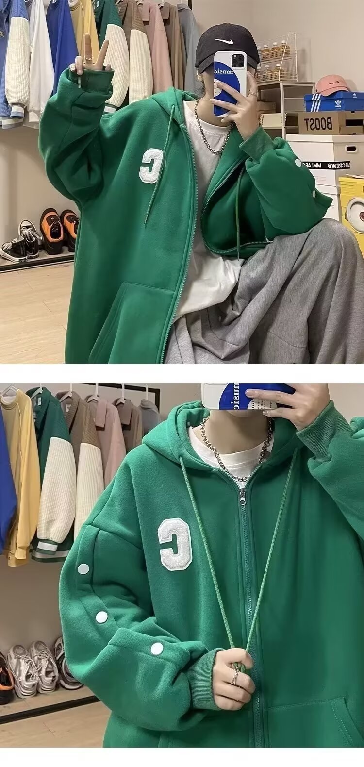 미국 편지 스웨터 재킷 남성 가을 가슴 디자인 센스 커플 카디건 자켓 한국 유행 후드 의류스토어 가기