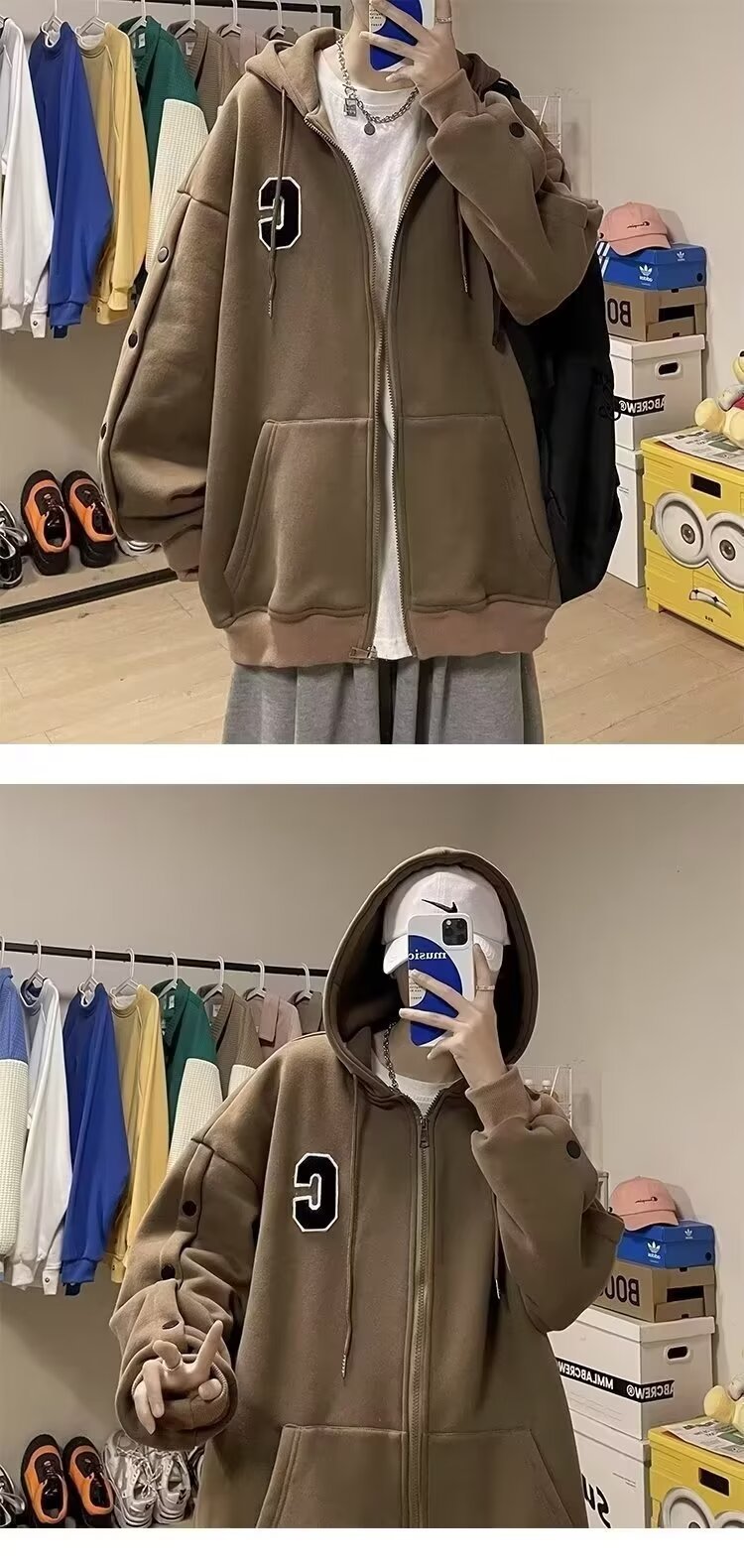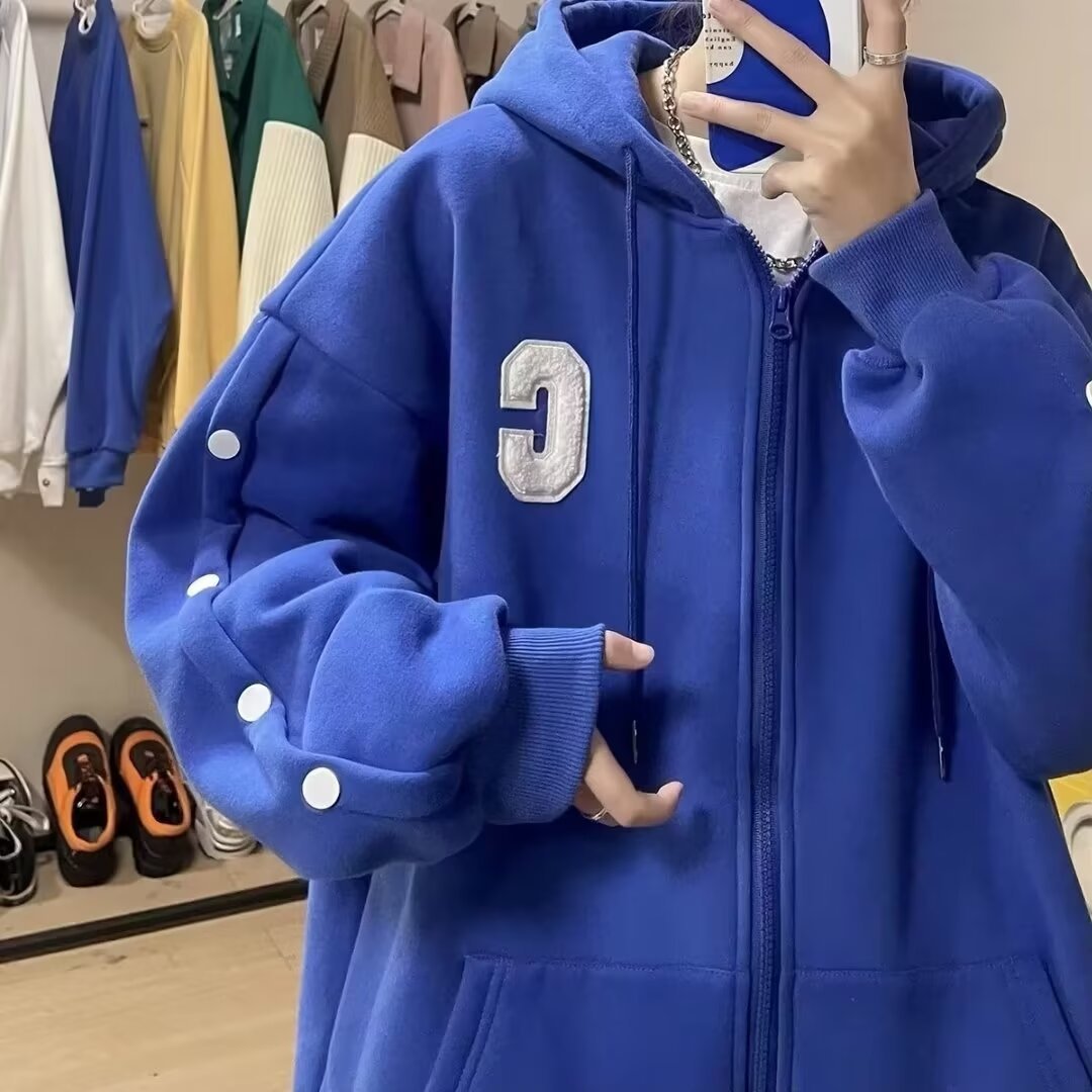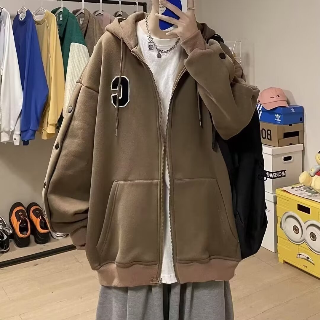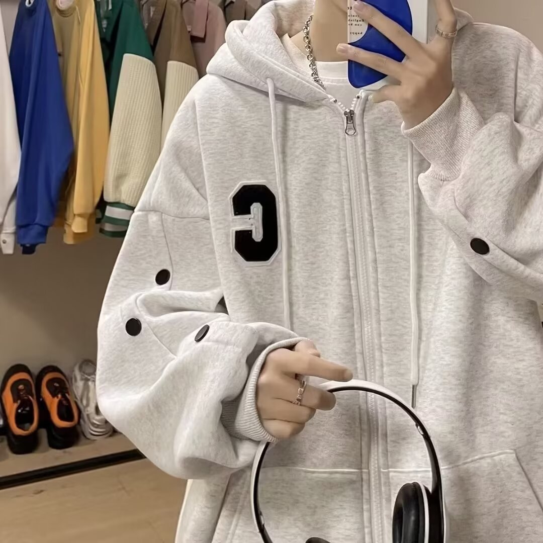 미국 편지 스웨터 재킷 남성 가을 가슴 디자인 센스 커플 카디건 자켓 한국 유행 후드 의류