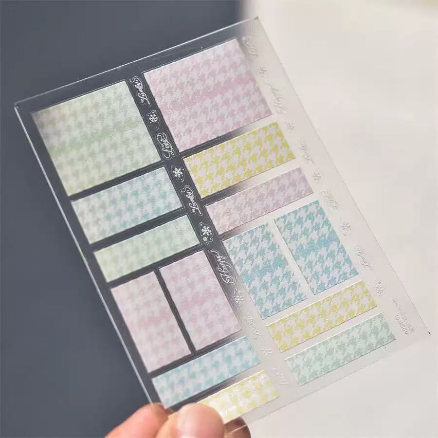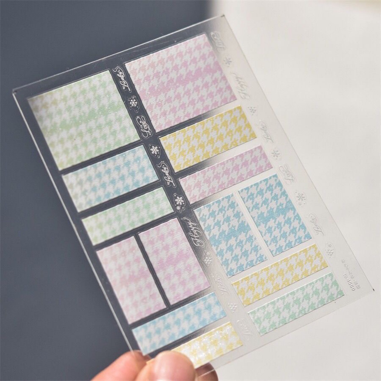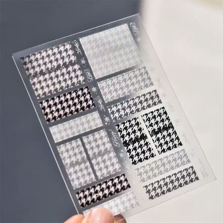 가을과 겨울 미친 새 울 네일 아트 체크 무늬 스티커 새로운 흑백 엠보싱 다크 브라운 네일 고급 장식