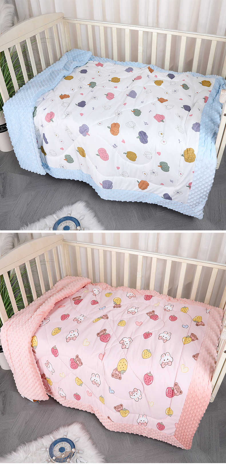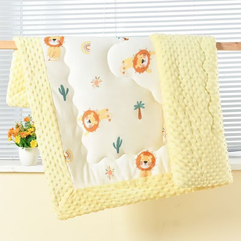 봄과 가을용 콩털 이불 아기 달래는 담요 만화 프린트 신생아 니트 면털 부드러운 유아용스토어 가기