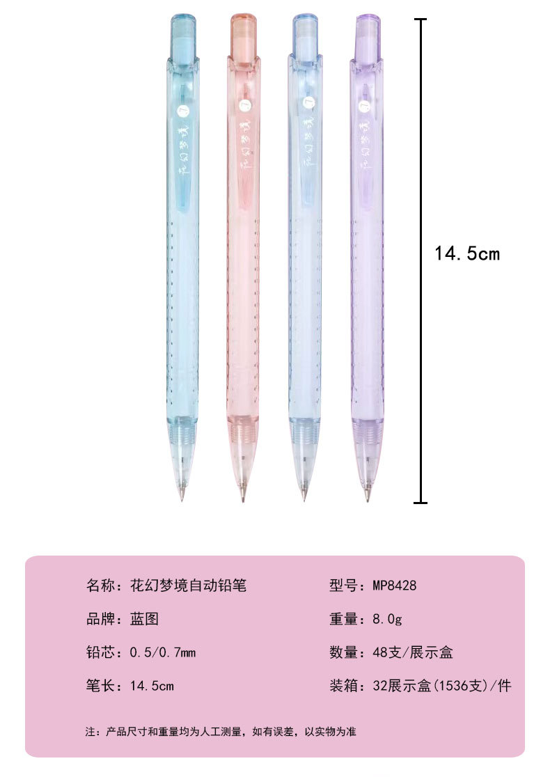 청사진 8428 기계 연필 학생 1 학년 활성 연필 0.5 지속적으로 핵심 높은 색상 가치 Morandi