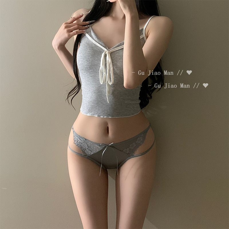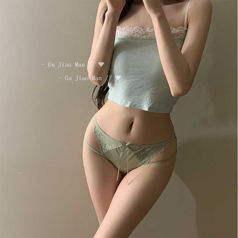 레이스 소녀 팬티 프렌치 스타일 순수한 매력 높은 슬릿 블랙 새틴 실크 가랑이 중간 허리 힙을 감싸는 메쉬 삼각 팬티스토어 가기