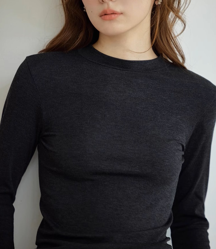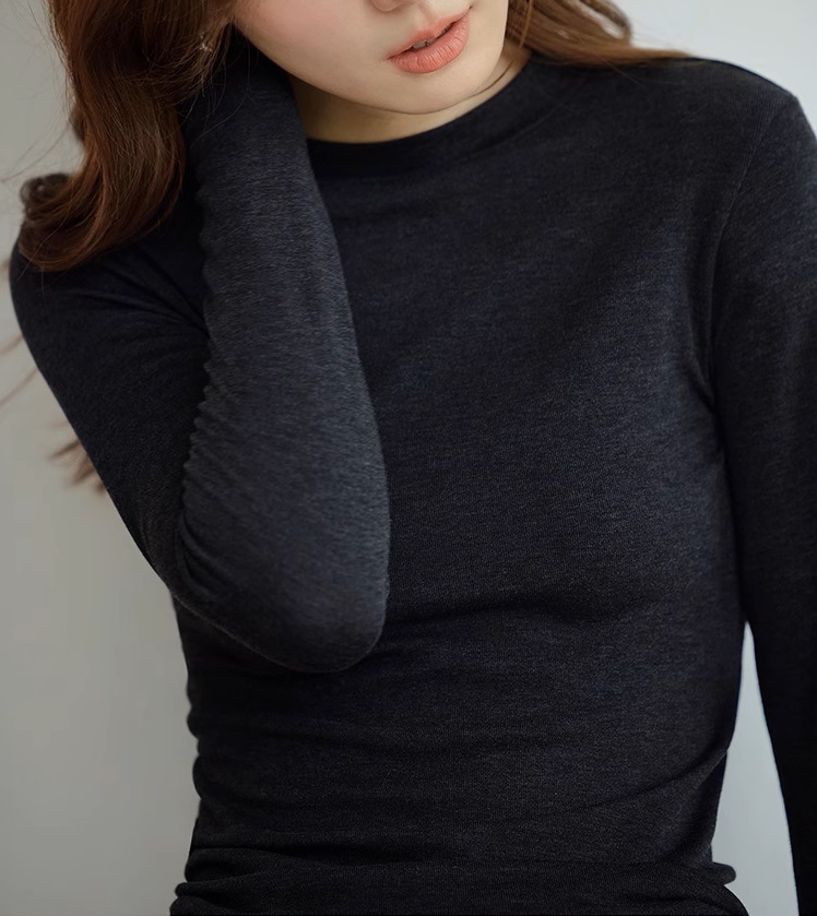 [재고] 1313 양모 블렌딩 다크 그레이 바닥 셔츠 가을 여성 세미 하이 크루 넥 풀오버 피부 친화적 인 슬림 티셔츠
