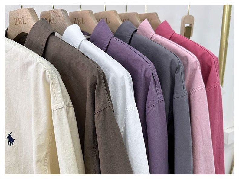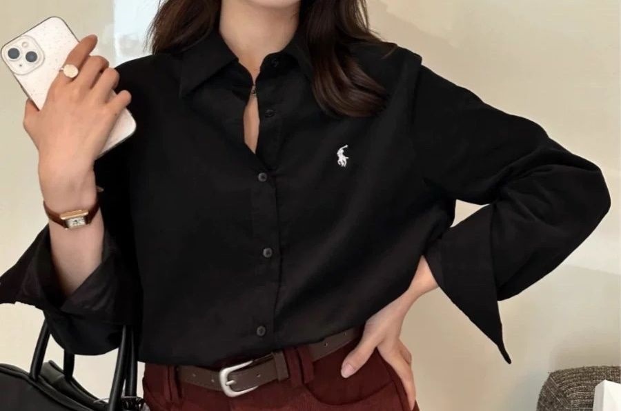 포니 자수 셔츠 여성용 느슨한 한국 스타일 간단한 높은 디자인 센스 통근 셔츠 패션 캐주얼 긴 소매 탑스토어 가기