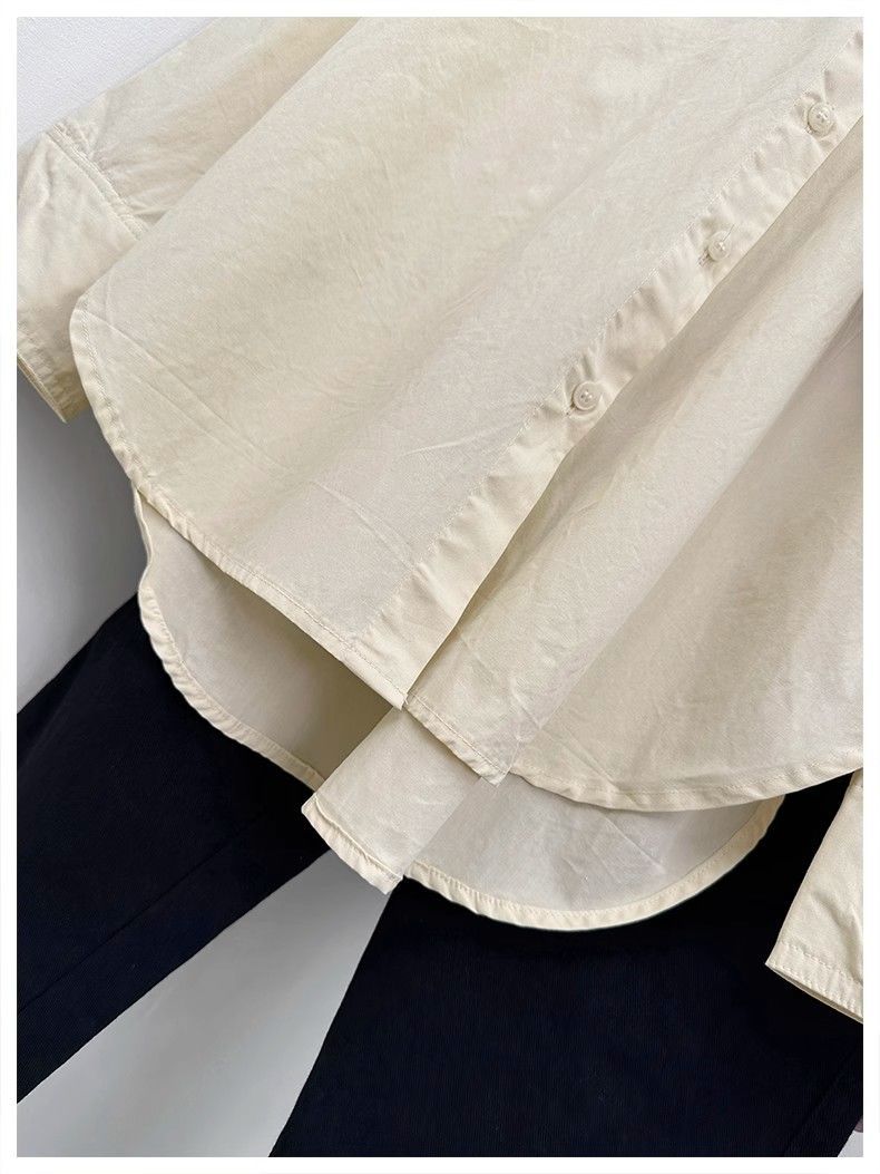 포니 자수 셔츠 여성용 느슨한 한국 스타일 간단한 높은 디자인 센스 통근 셔츠 패션 캐주얼 긴 소매 탑