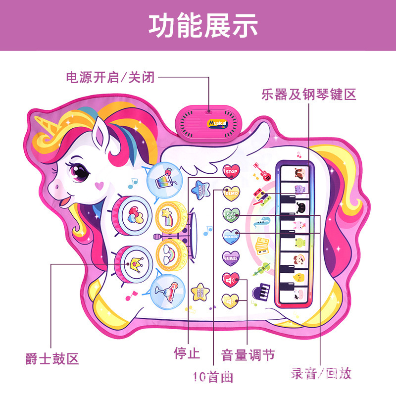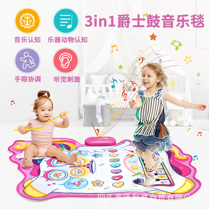 새로운 어린이 조기 교육 음악 댄스 담요 3 대 1 다기능 재즈 드럼 음악 담요 아기 피아노 게임 매트