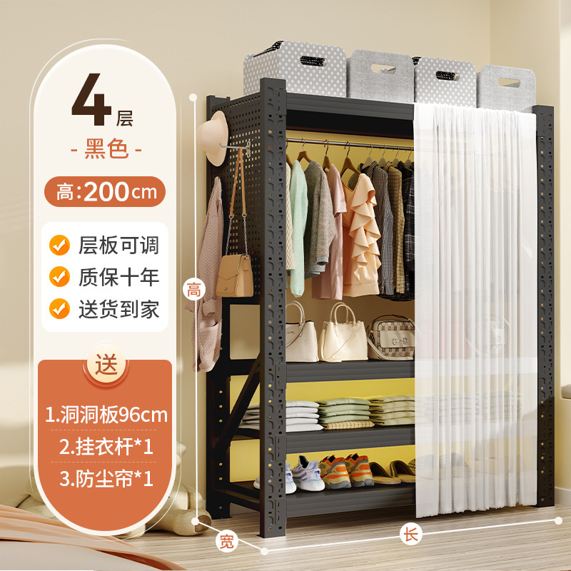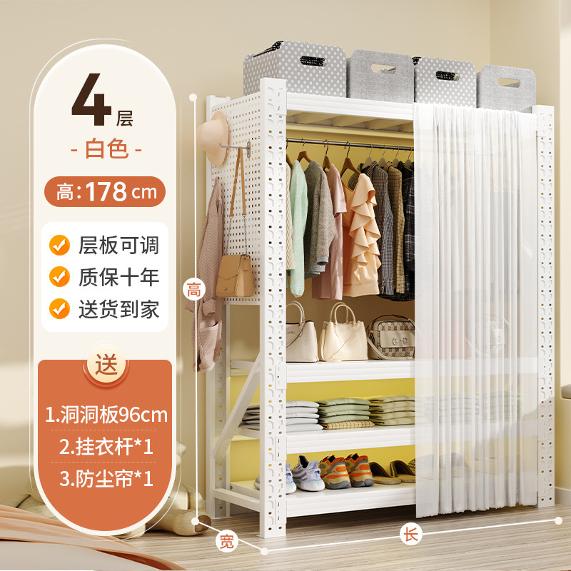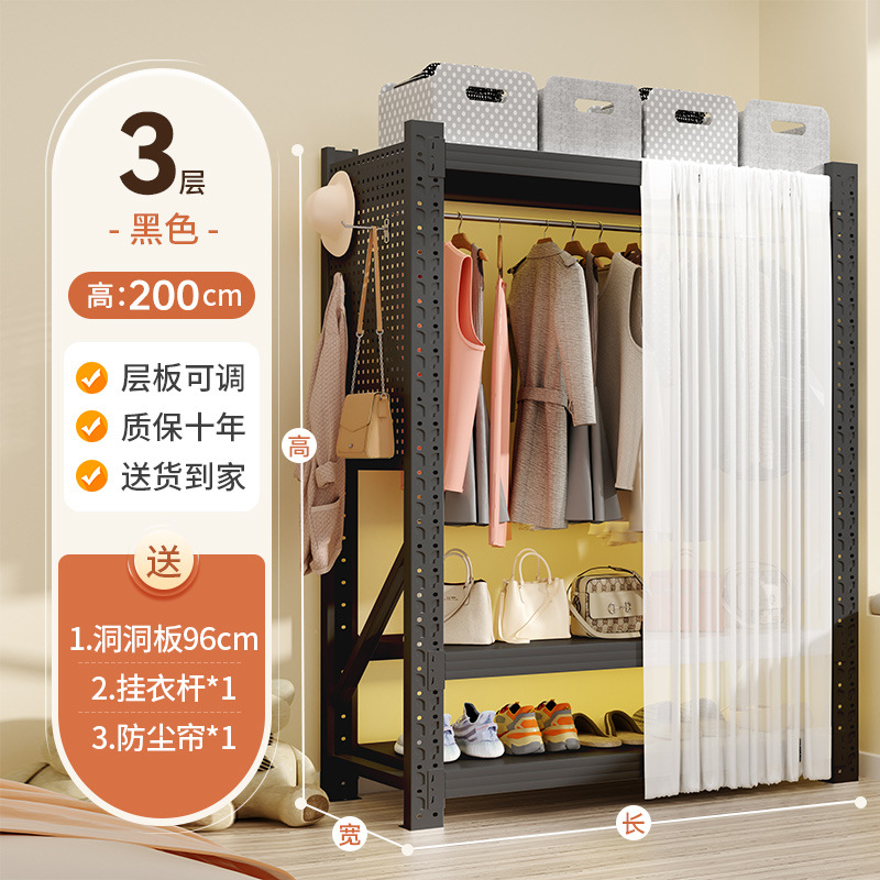 • 메인 사진: 전체 길이 205*깊이 60*높이 200cm [전체 천공판 + 방진 커튼 * 1 + 옷걸이 막대 * 3 포함]