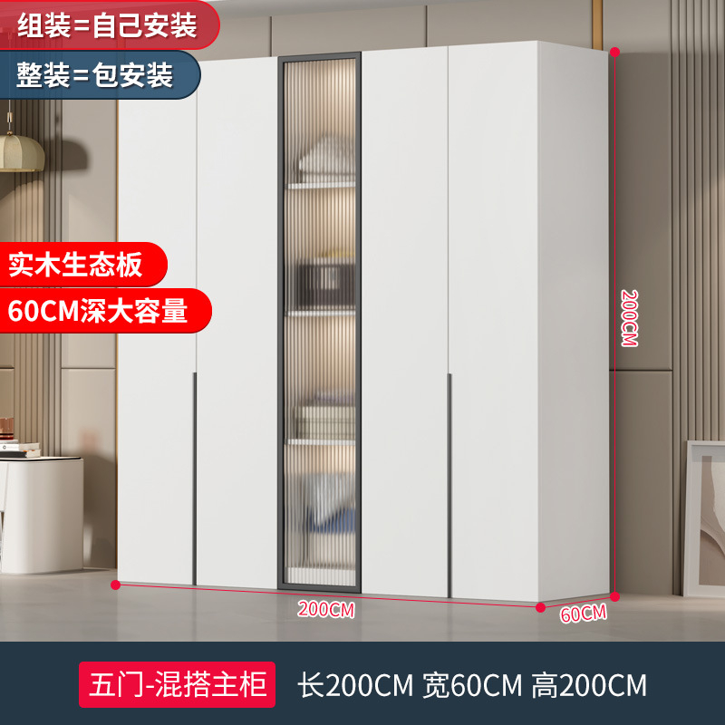 • [180*60*200] 유리믹스 메인캐비닛/5도어(원목) TN02 밀크화이트