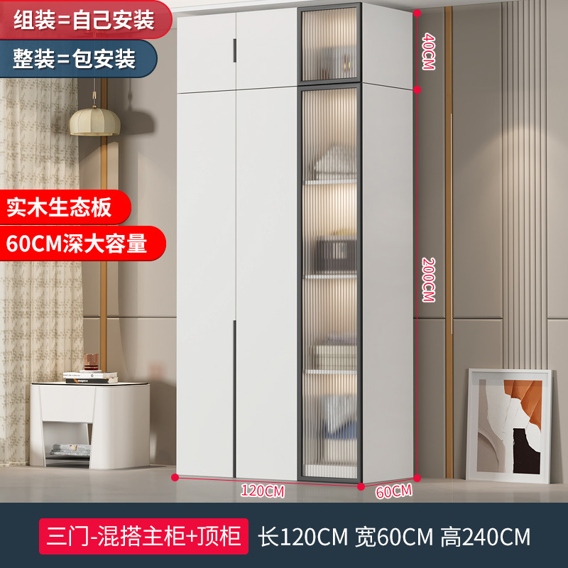 • [120*60*200] 메인캐비닛 + 탑캐비닛/3도어(원목) TN02 밀크화이트
