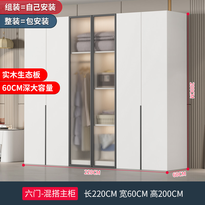 • [220*60*200] 유리믹스 메인캐비닛/6도어(원목) TN02 밀크화이트