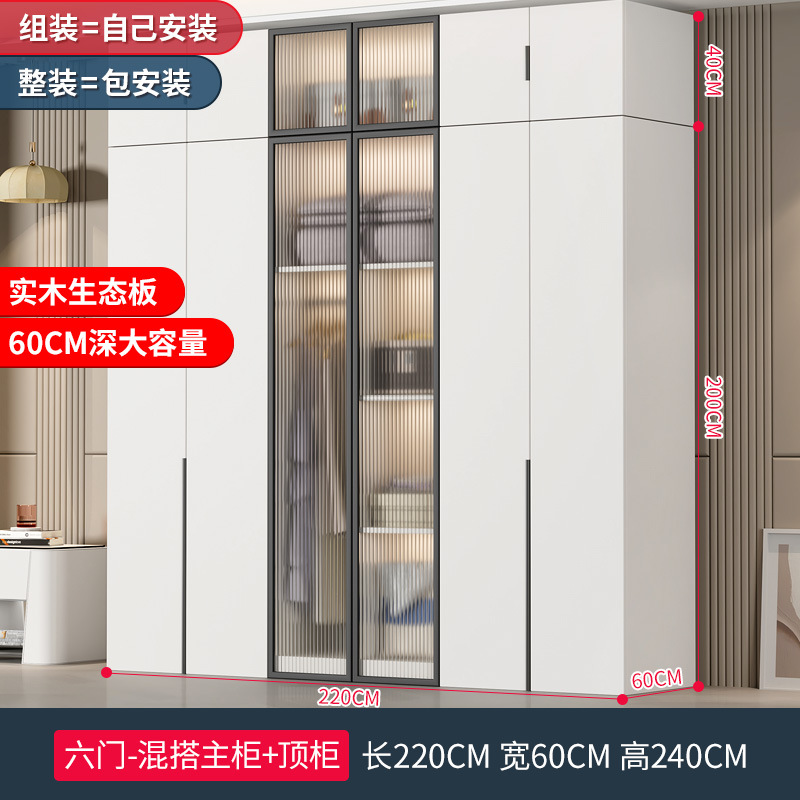 • [220*60*200] 메인캐비닛 + 탑캐비닛/6도어(원목) TN02 밀크화이트