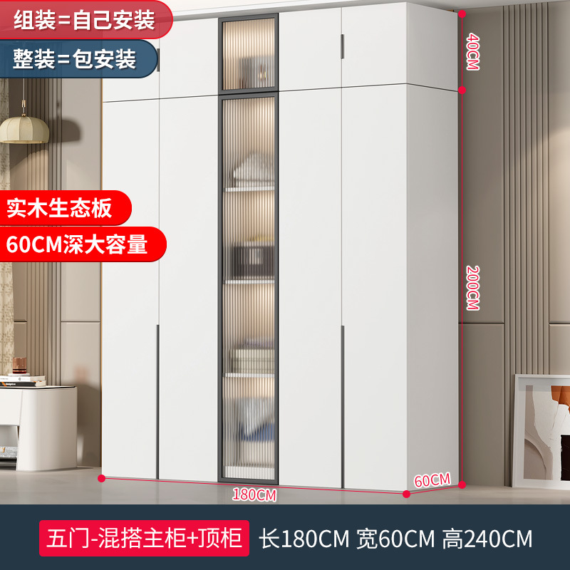 • [180*60*200] 메인캐비닛 + 탑캐비닛/5도어(원목) TN02 밀크화이트
