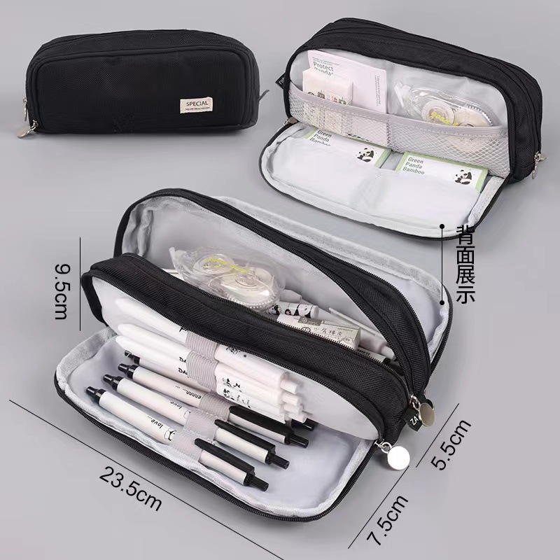 • 더블 레이어 더블 오픈 필통 - 다크 블루