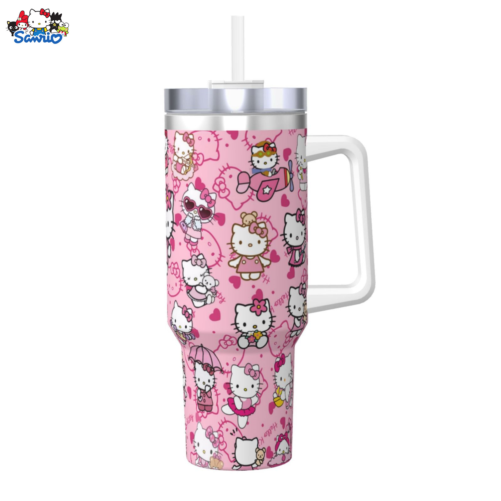 국경 간 아마존 40oz 산리오 만화 KT 고양이 시리즈 보온병 컵 아이스 깡패 컵 핸들 휴대용 커피 컵스토어 가기