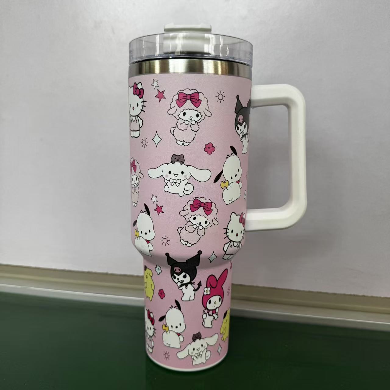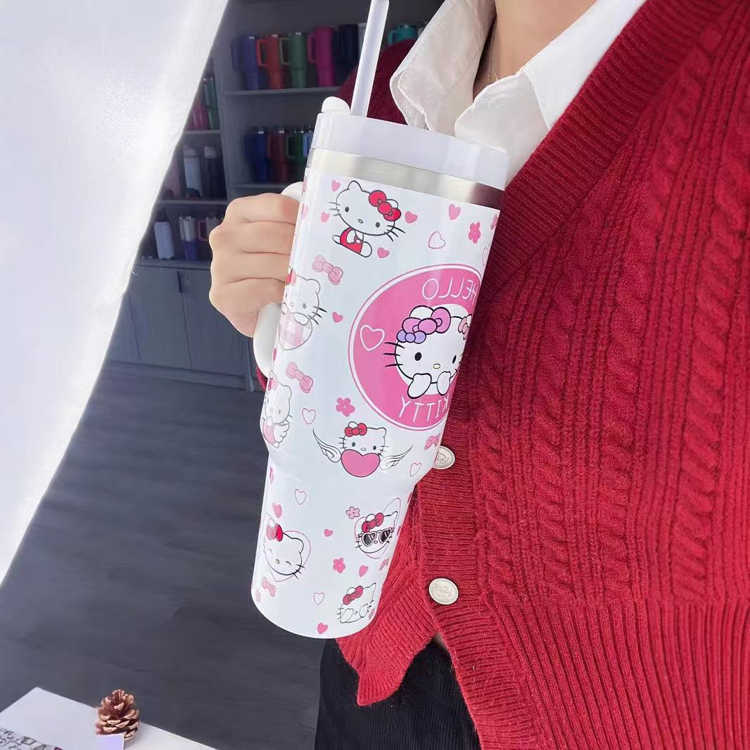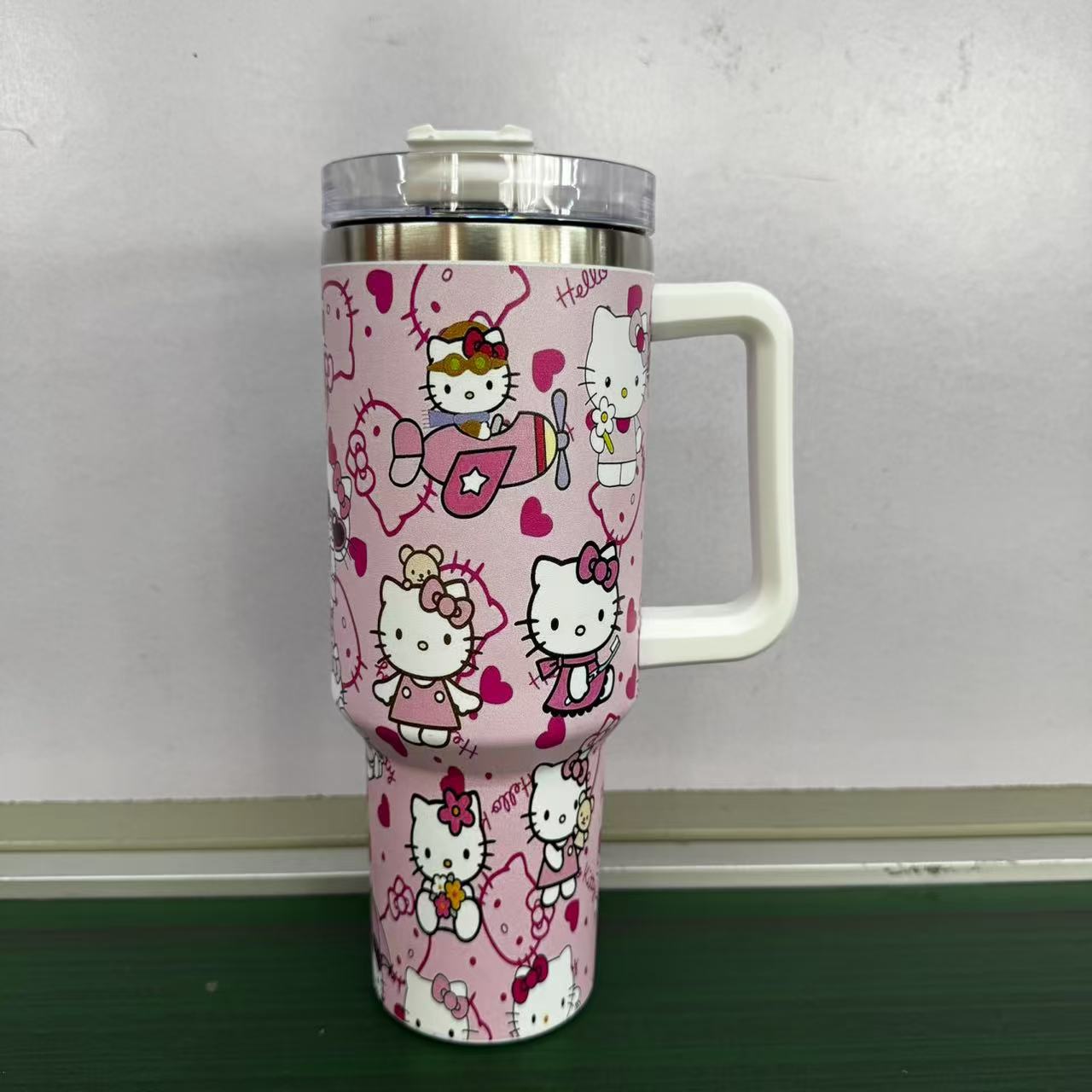 국경 간 아마존 40oz 산리오 만화 KT 고양이 시리즈 보온병 컵 아이스 깡패 컵 핸들 휴대용 커피 컵