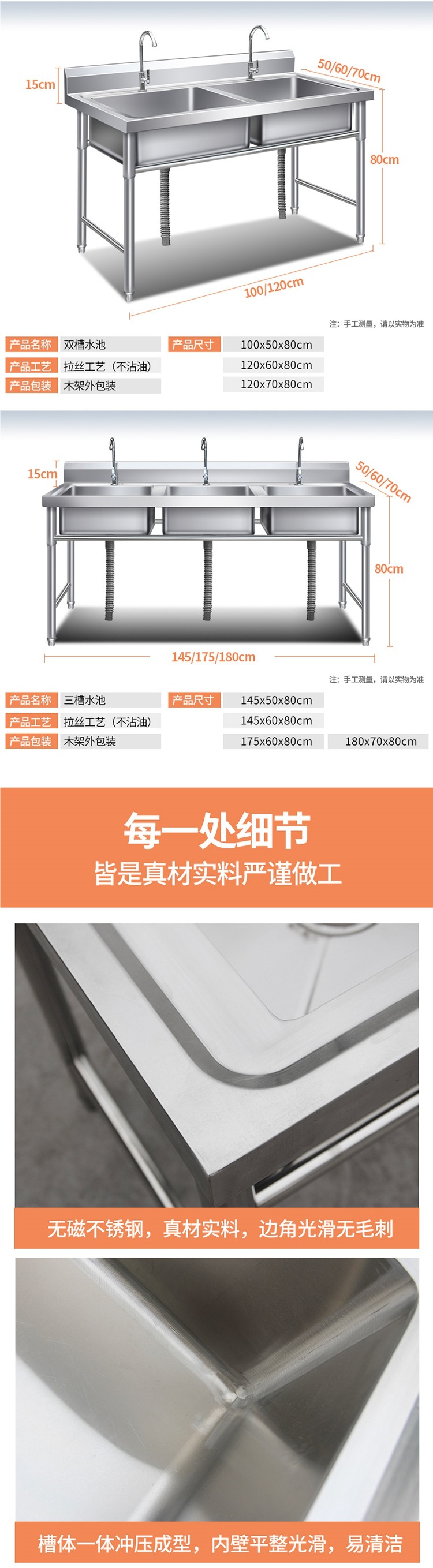 상업용 스테인레스 스틸 싱크 더블 싱크 싱글 싱크 3 싱크 주방 싱크 레스토랑 싱크 소독 싱크스토어 가기