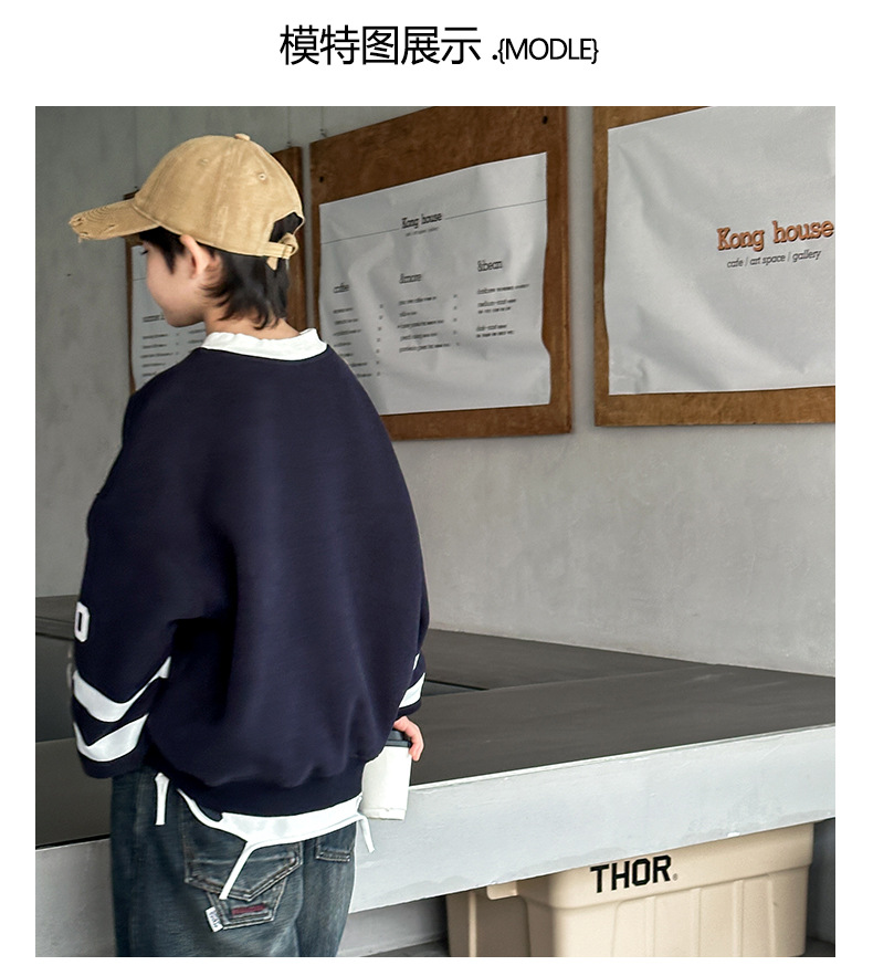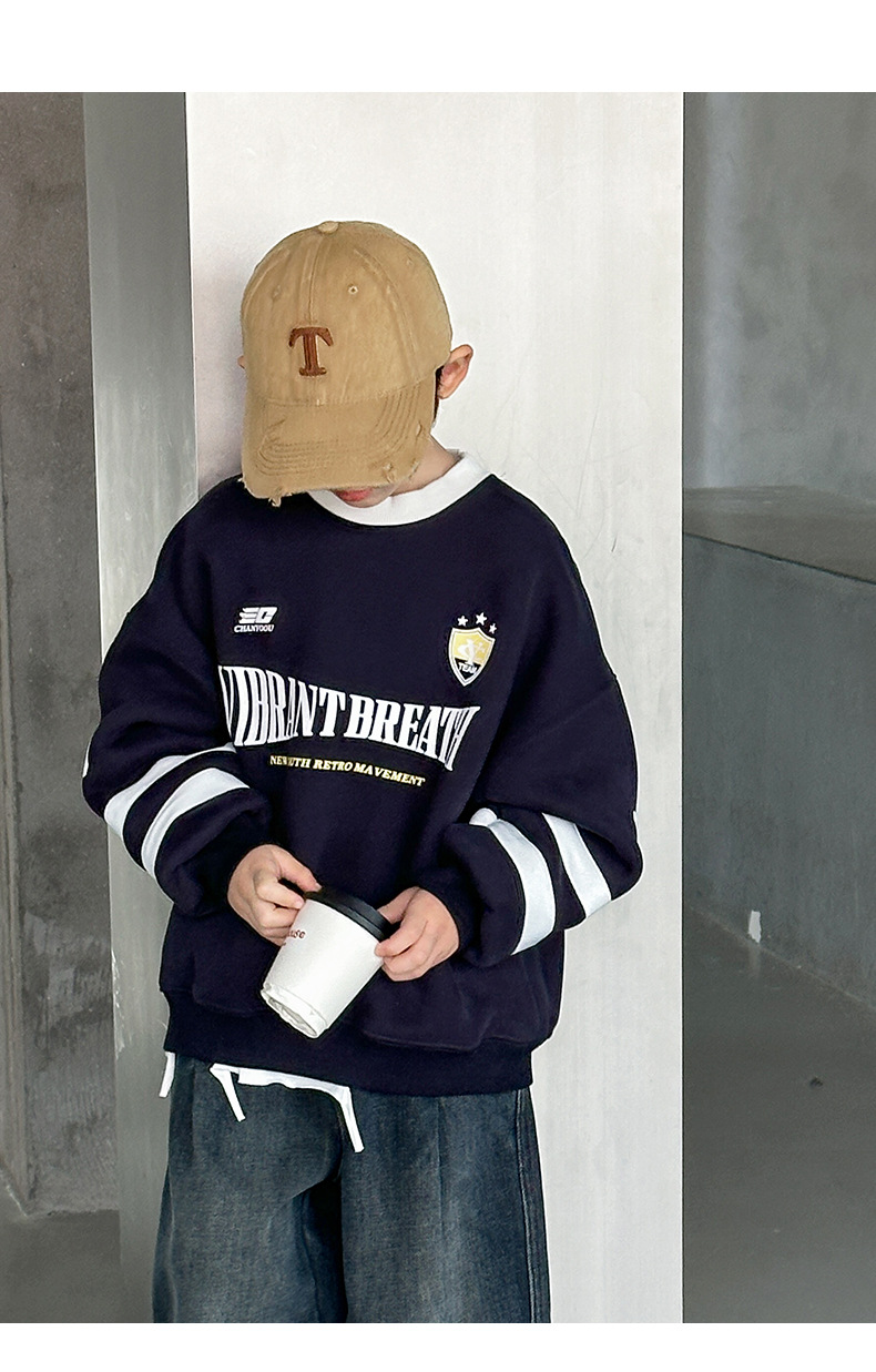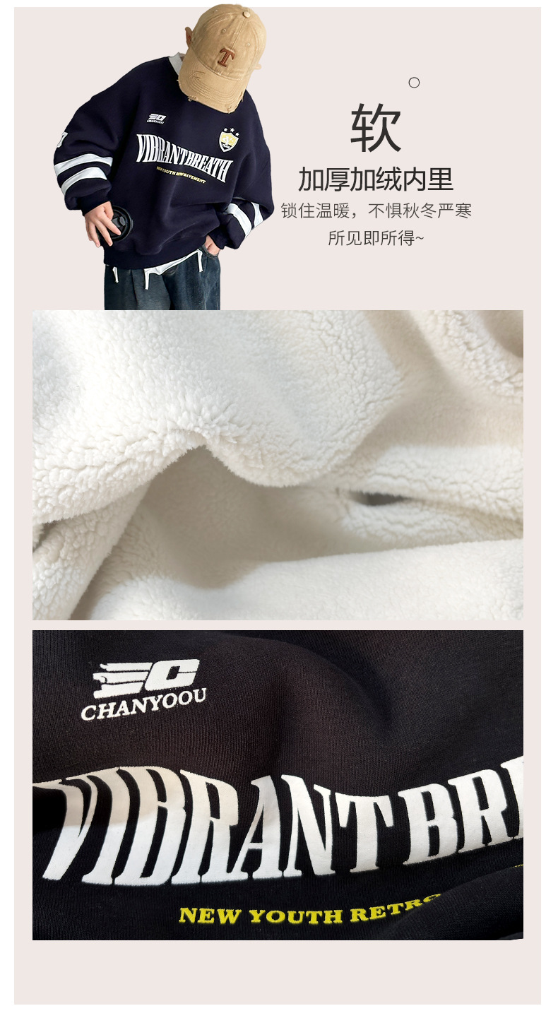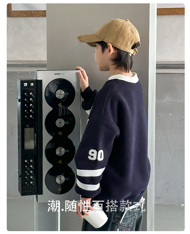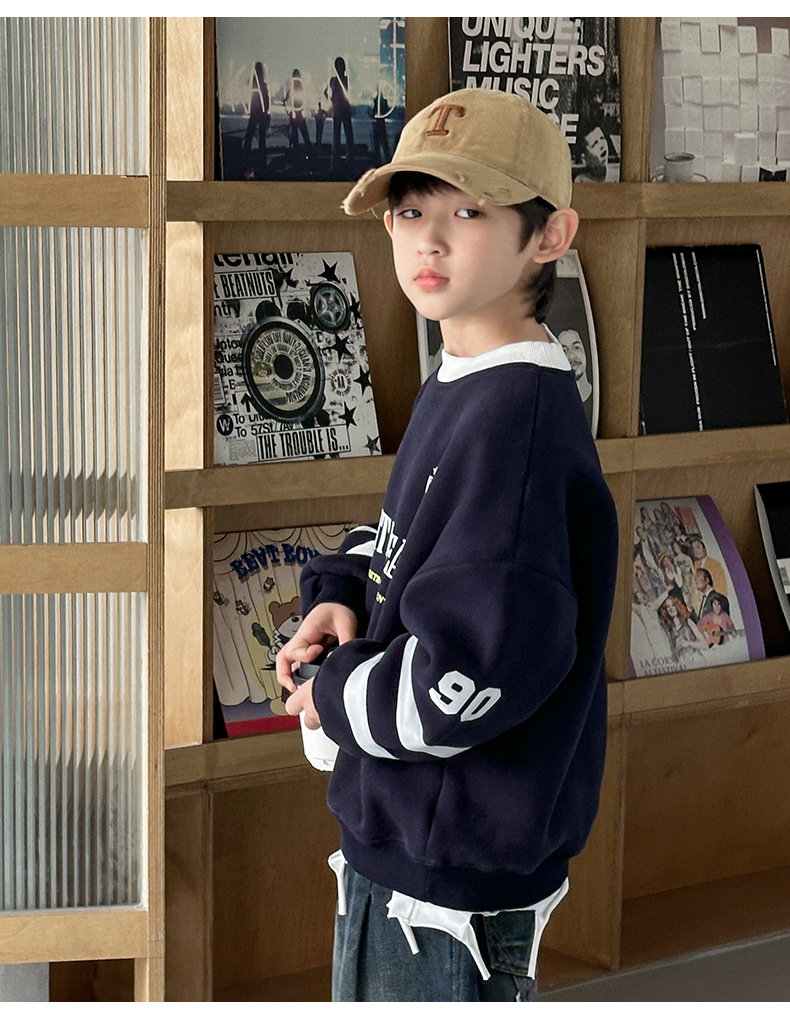 남아용 기모 스웨트셔츠 가을 겨울 2025 신상 중대형 아동 겨울옷 일체형 기모 두꺼운 겨울 라운드넥 상의스토어 가기