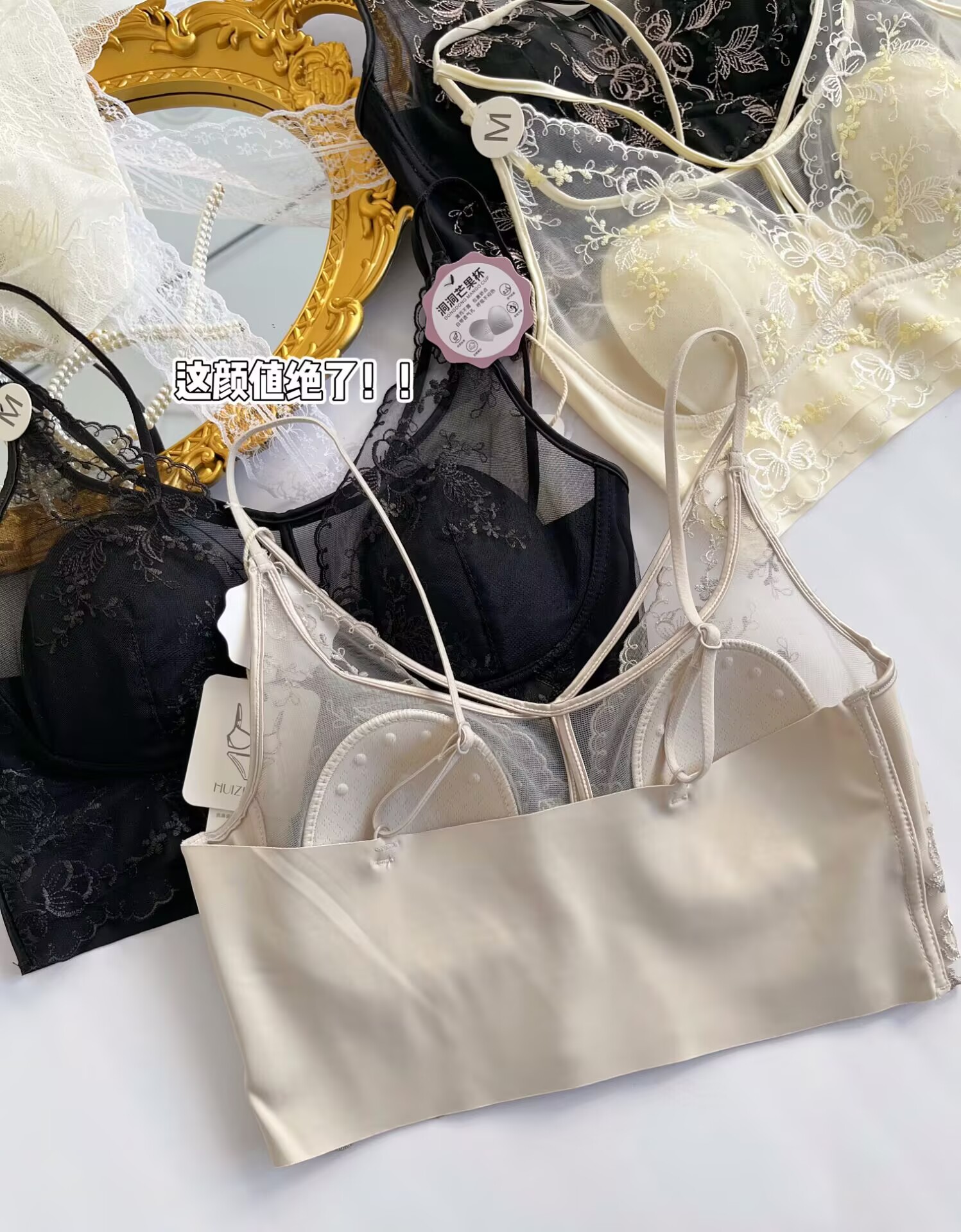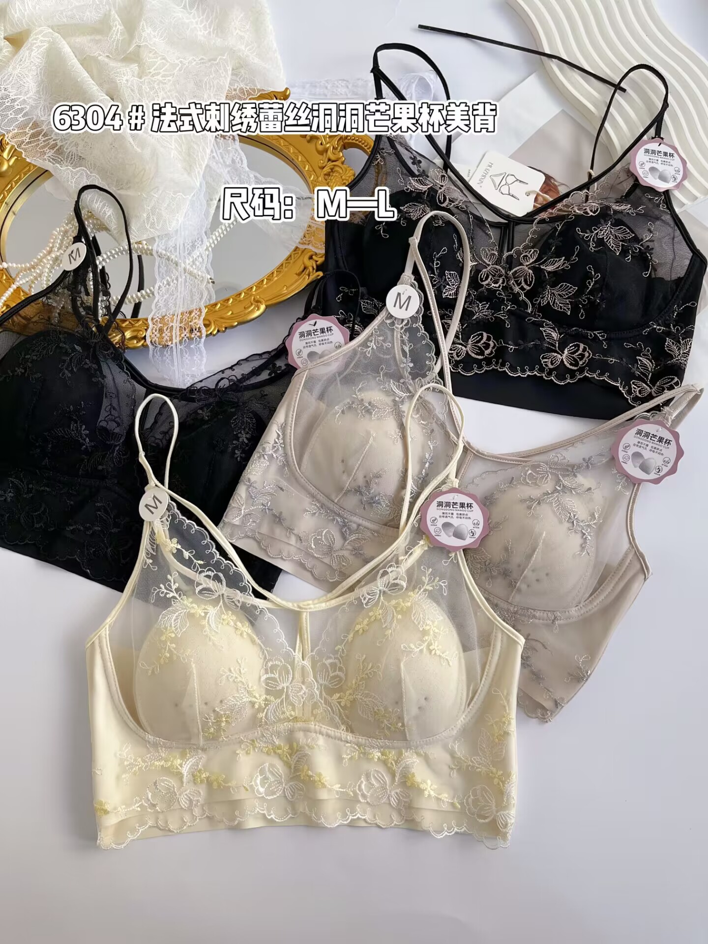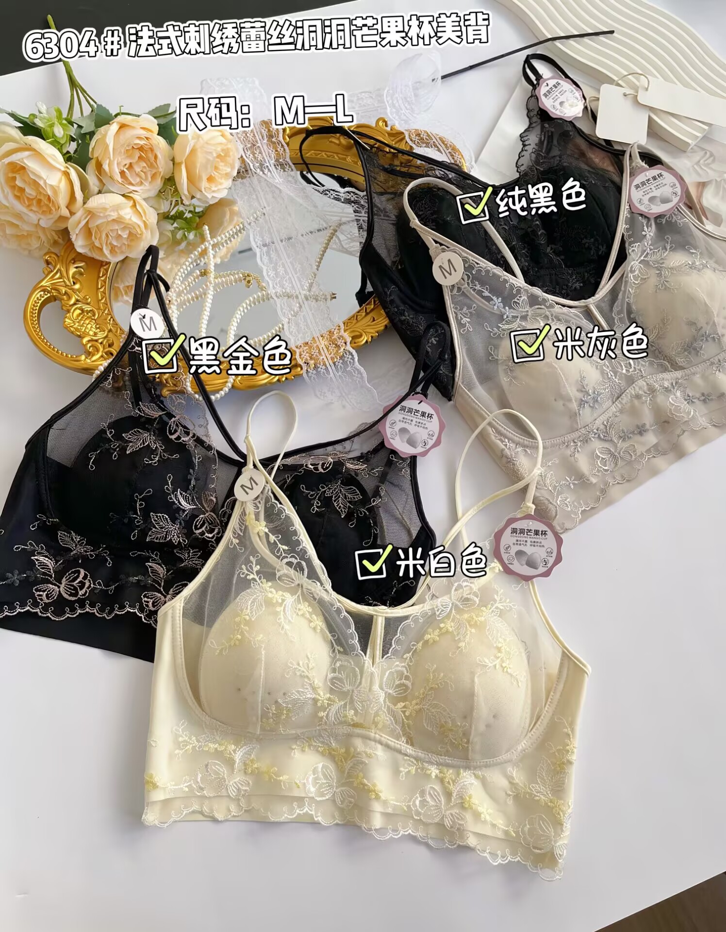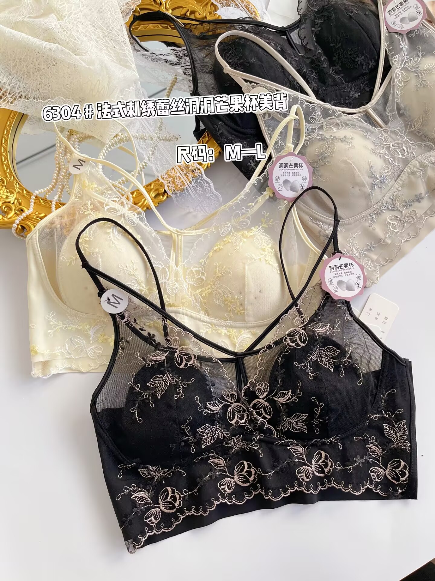 큰 가슴은 작은 뒤 자수 레이스 프랑스 높은 수준의 울트라 얇은 토끼 귀 컵 원피스 통기성 가슴 랩 속옷 6304