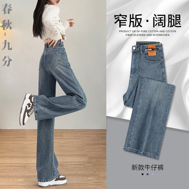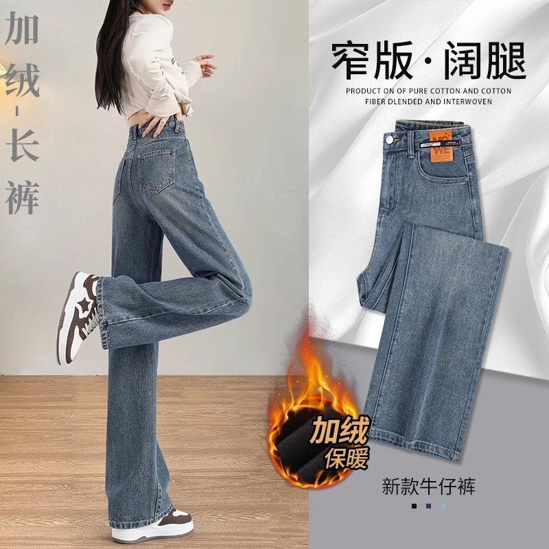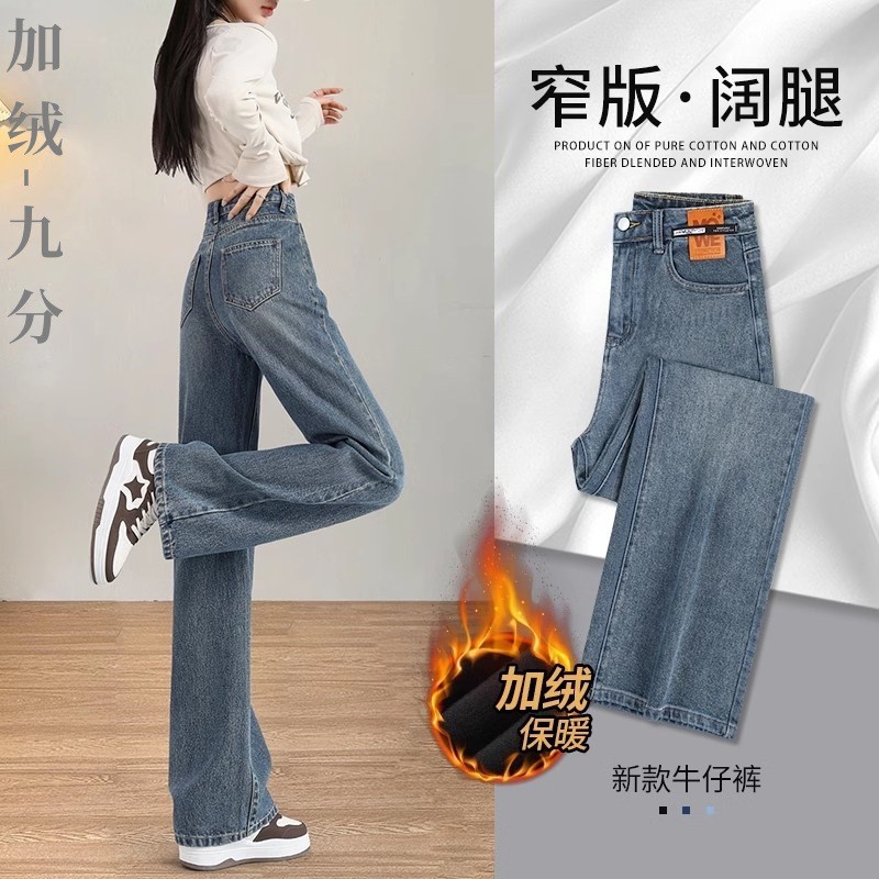 여성용 와이드 레그 청바지 가을 겨울용 플러스 사이즈 2025년 신상 인기 바지 하이웨이스트 루즈핏 슬림핏 스트레이트 팬츠