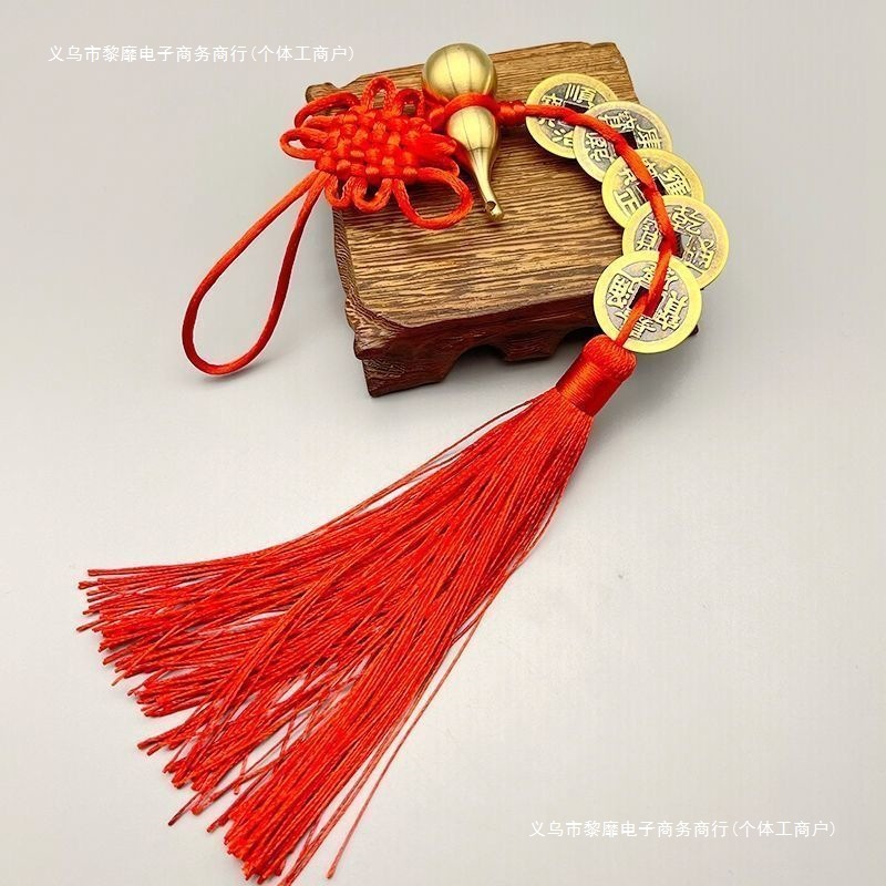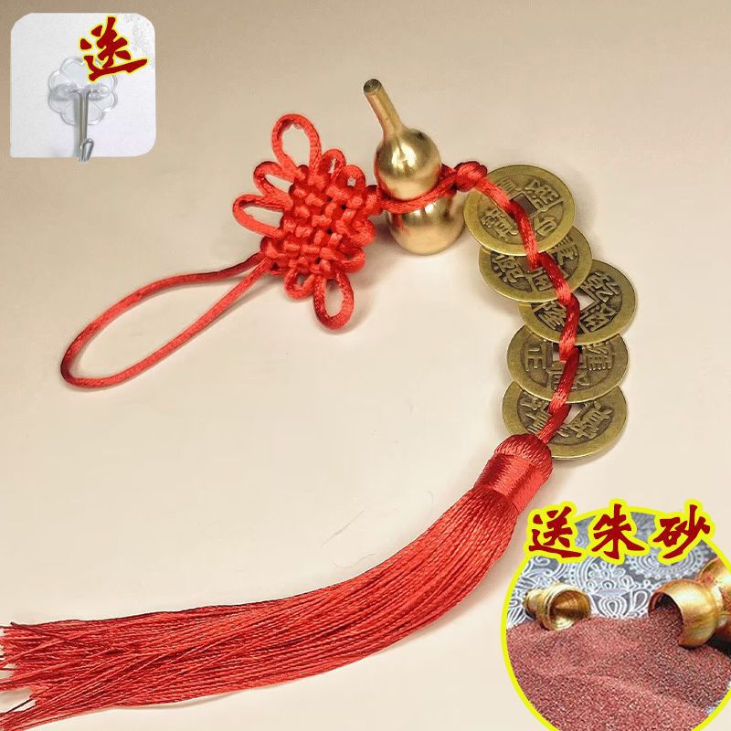 황동 중공 조롱박 5 명의 황제 돈 펜던트 문 문 진짜 구리 조롱박 펜던트 길조 매듭 홈 축복 장식품