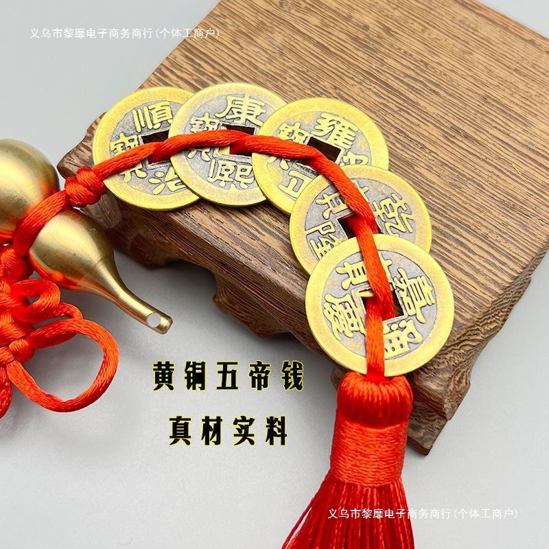 황동 중공 조롱박 5 명의 황제 돈 펜던트 문 문 진짜 구리 조롱박 펜던트 길조 매듭 홈 축복 장식품스토어 가기
