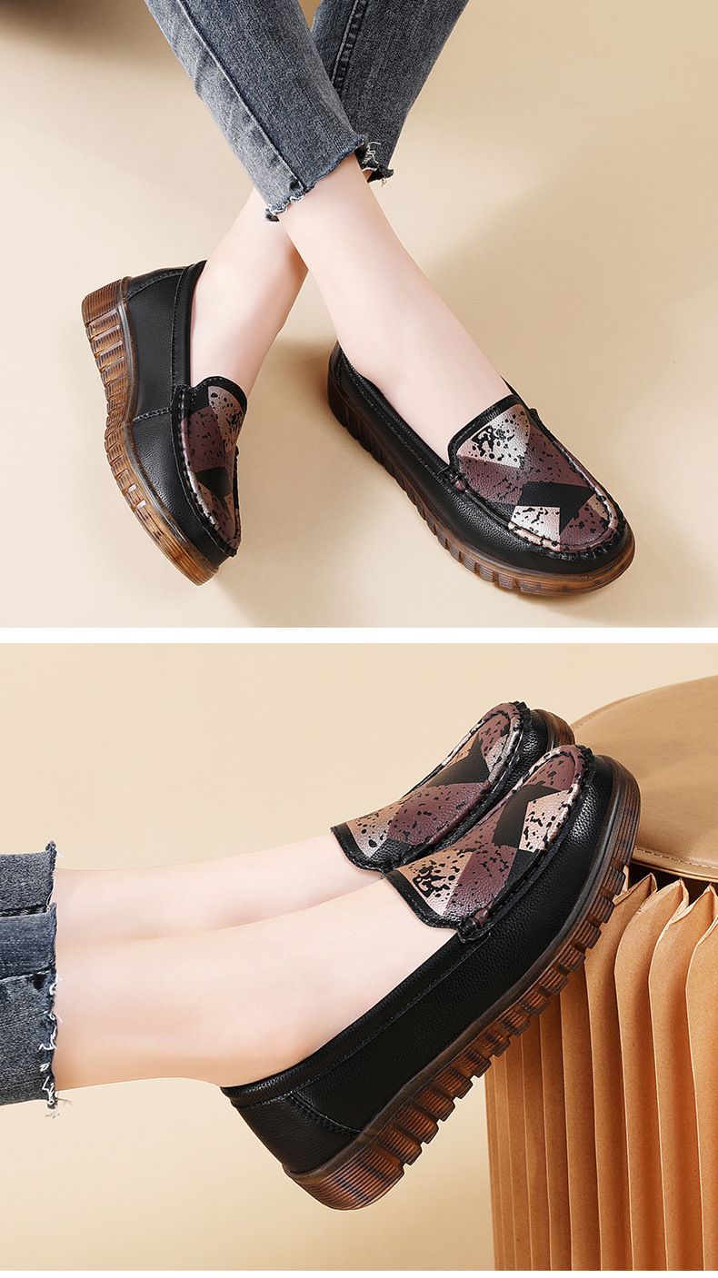 봄 2025 새로운 스타일 더그 신발 여성 유행 인쇄 엄마 신발 캐주얼 슬립-미끄럼 방지 소프트 하단 작업 가죽 신발