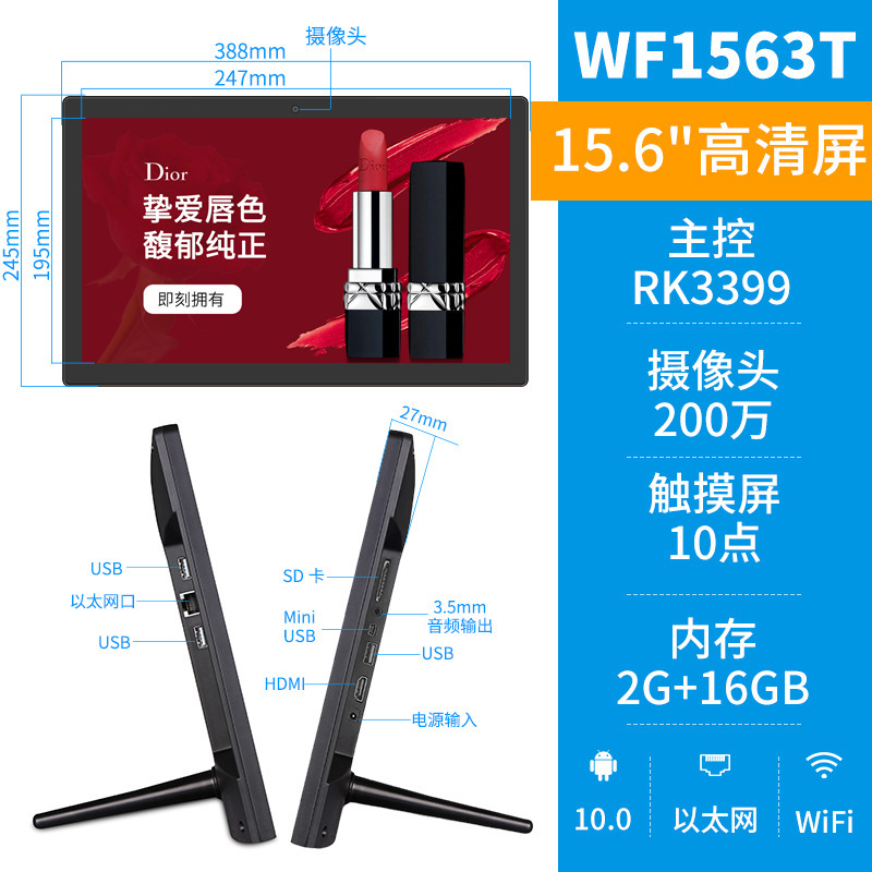 • 15.6inch WF1563T 2.0million 카메라 2+16GB 안드로이드 10 터치 광고 기계