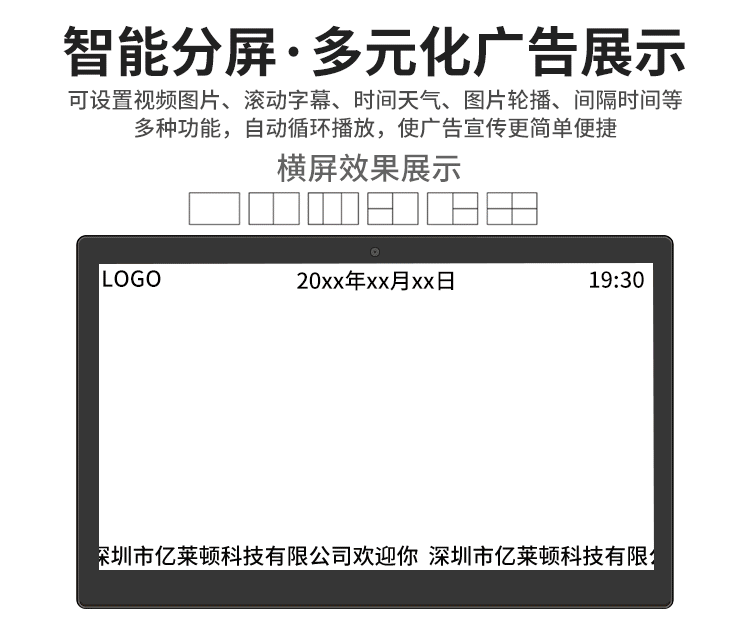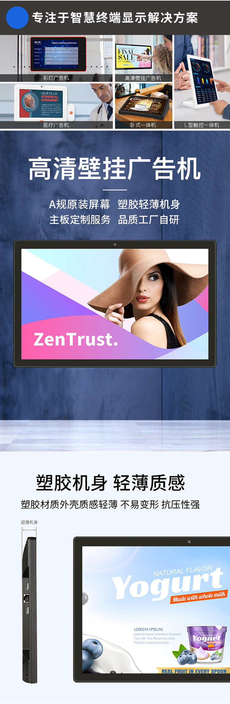 15.6 인치 벽걸이 형 고화질 터치 올인원 광고 기계 터치 디스플레이 화면 수평 및 수직 네트워크 지능형 분할 화면