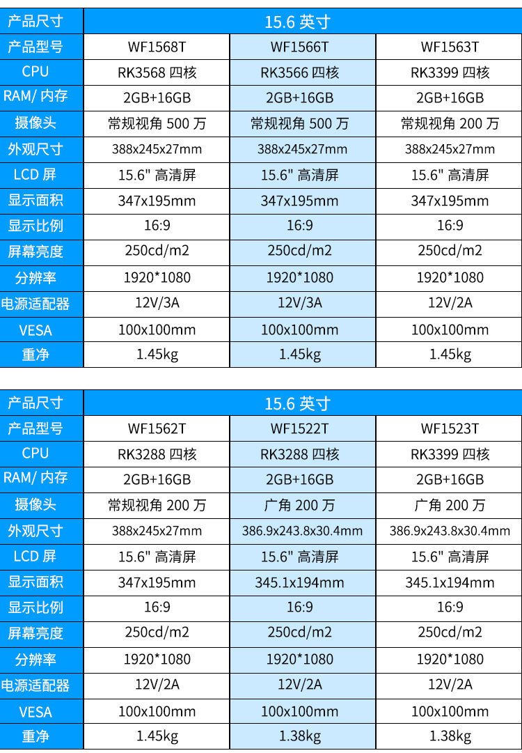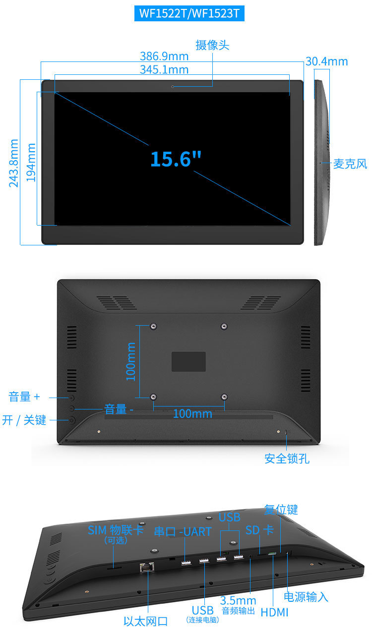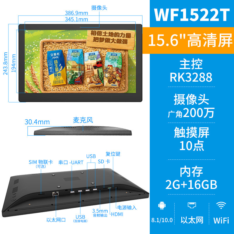 • 15.6inch WF1522T 2.0million 카메라 2+16GB 안드로이드 8.1/10 터치 광고 기계